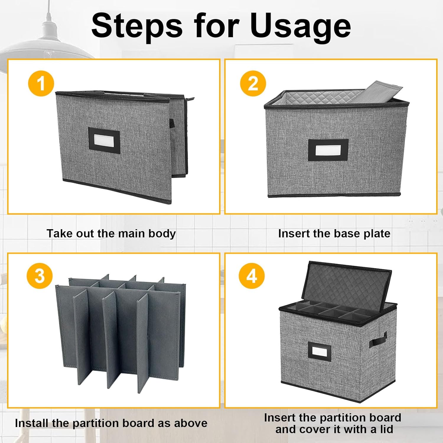 Champagne Flute Storage Box,Quilted Stemware Storage Box Hard Shell,Stackable Champagne Glass Container,Wine Glass, Crystal Glassware, Drinkware Case for Moving Transport(Grey)