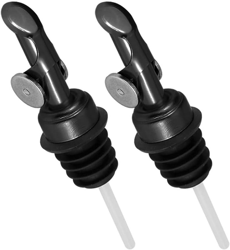 MEETSWEET Olive oil dispenser nozzle, stainless steel automatic opening and closing nozzle, leak proof, suitable for olive oil, vinegar, wine, and other liquid bottles (black 2 pcs)