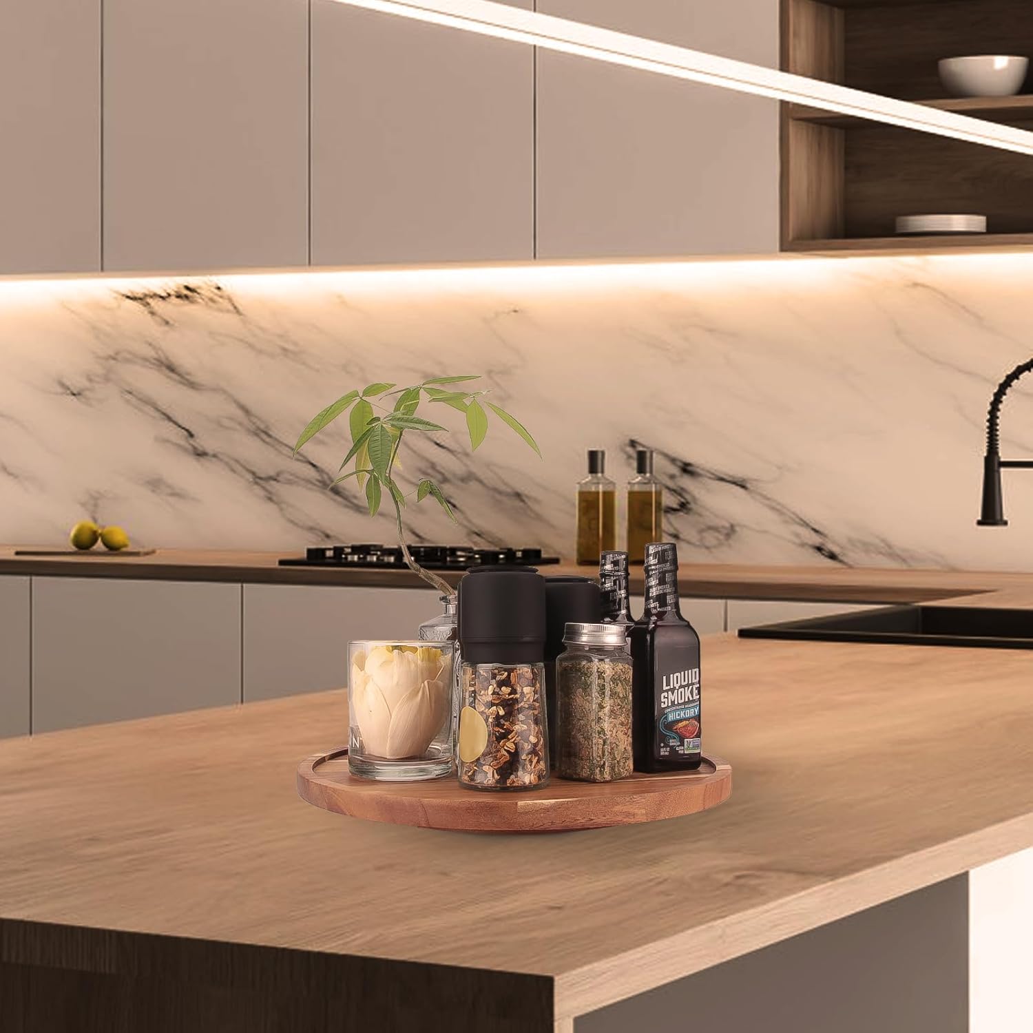 14 inch Wooden Lazy Susan Turntable, Acacia Wood Spinning Organizer for Dining Table, Cabinet, Fridge, countertop, Pantry