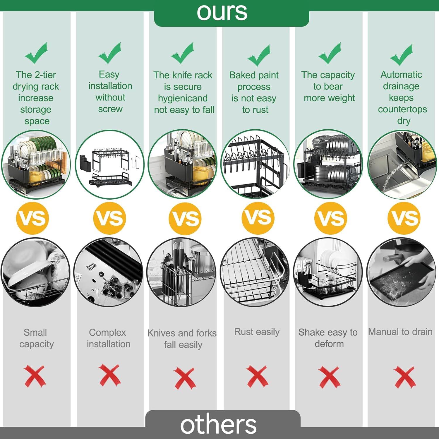- Commitment to Quality:Our two-tier dish drying rack is a home and apartment kitchen essential. This dish drying rack is a stylish kitchen accessory in home & kitchen; it can be used as a kitchen rack and kitchen gadget. If you have any questions about the dish racks for kitchen counter, Pls get in touch with us. We strive to respond to your inquiries promptly.