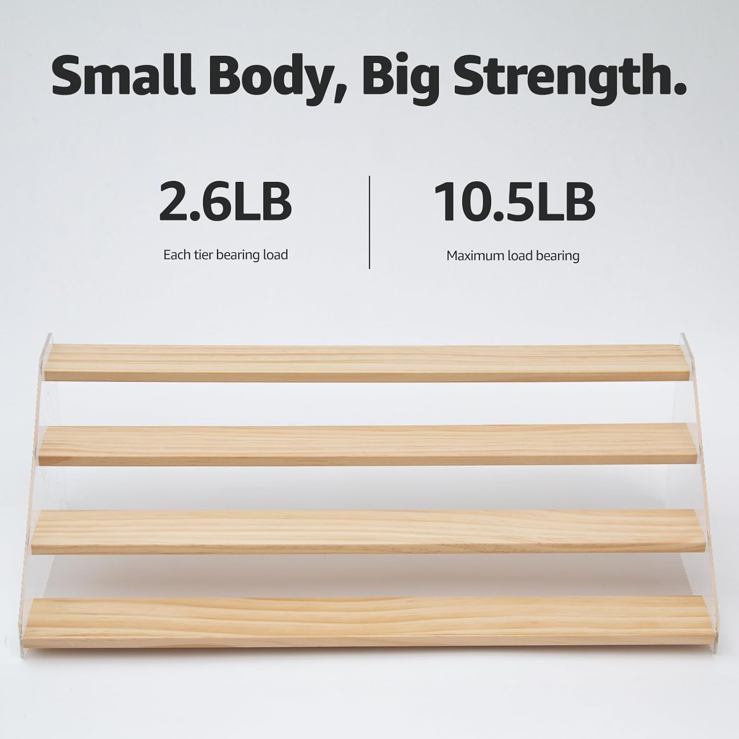 - Elegant & Sturdy: Risers display stands constructed from high-quality pine wood and corrugated acrylic, making it both aesthetically pleasing and fashionable, as well as durable and resistant to deformation, the spice shelf is a beautiful and robust addition to any space