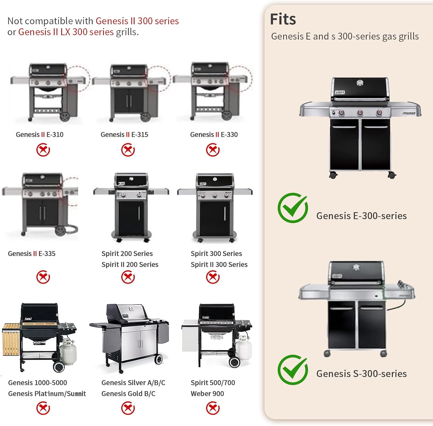 - Fits Perfectly: Fits Weber Genesis E-310 (2007-2016), Genesis E-320 (2007-2016), Genesis E-330 (2011-2016), Genesis EP-310 (2007-2016), Genesis EP-320 (2007-2016), Genesis EP-330 (2011-2016), Genesis S-310 (2007-2016), Genesis S-320 (2007-2010), Genesis S-330 (2011-2016), 6512001, 6519099 Gas Grills