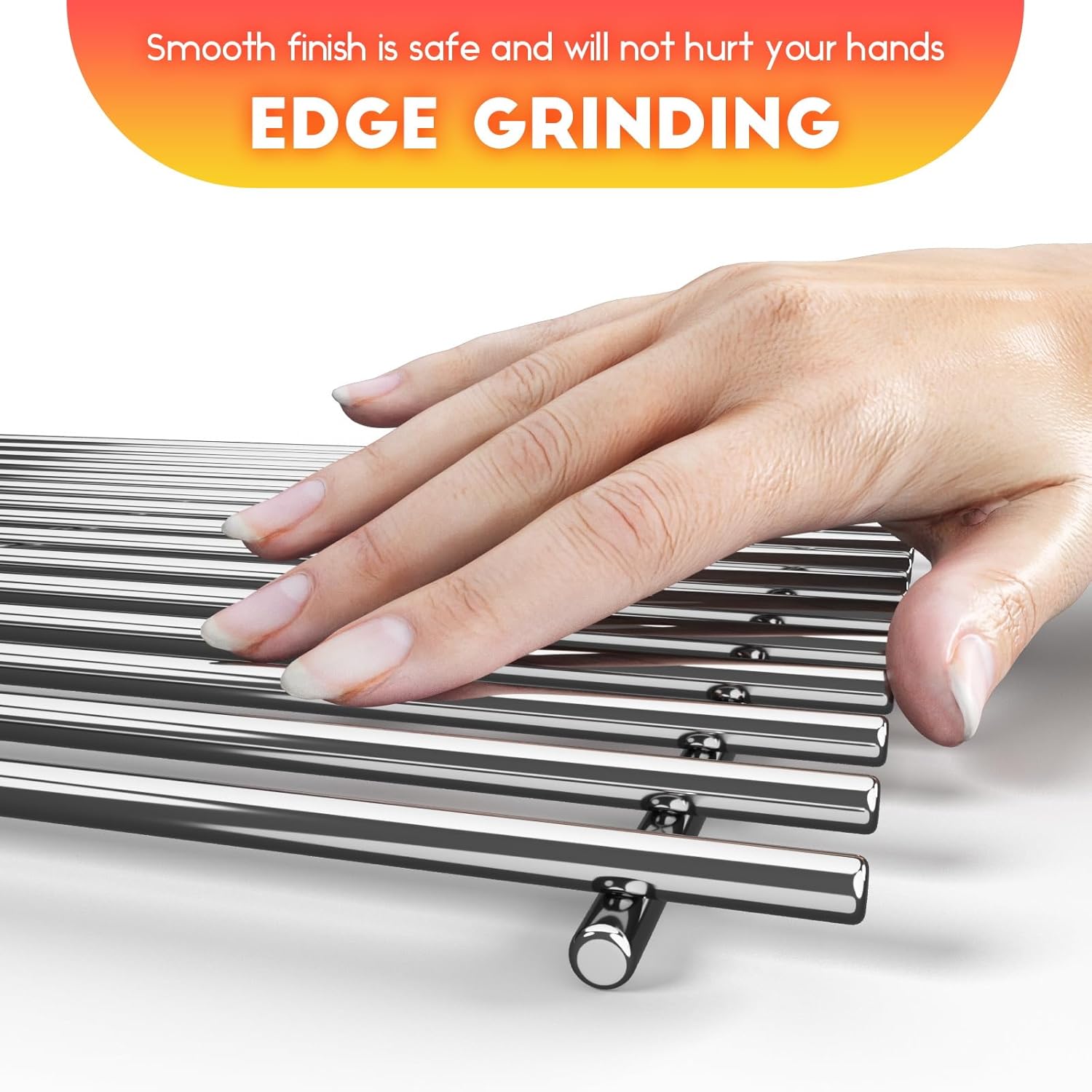 - Excellent Craftsmanship: Made of stainless steel, much longer life than porcelain grill grates, durable & rust-proof, while the smooth surface helps easy cleaning. Narrow gaps between each rod allows you to cook small food without worrying food-falling