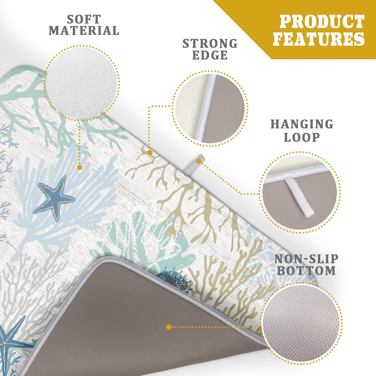 - 【Easy to Storage】This seashell starfish design drying mat with hang rope, soft and foldable, durable, easy to storage it by hanging or folding it up in a drawer or tuck it elsewhere. Perfect for tight spaces like campers, boats and cottages where having a dual purpose item will come in handy.