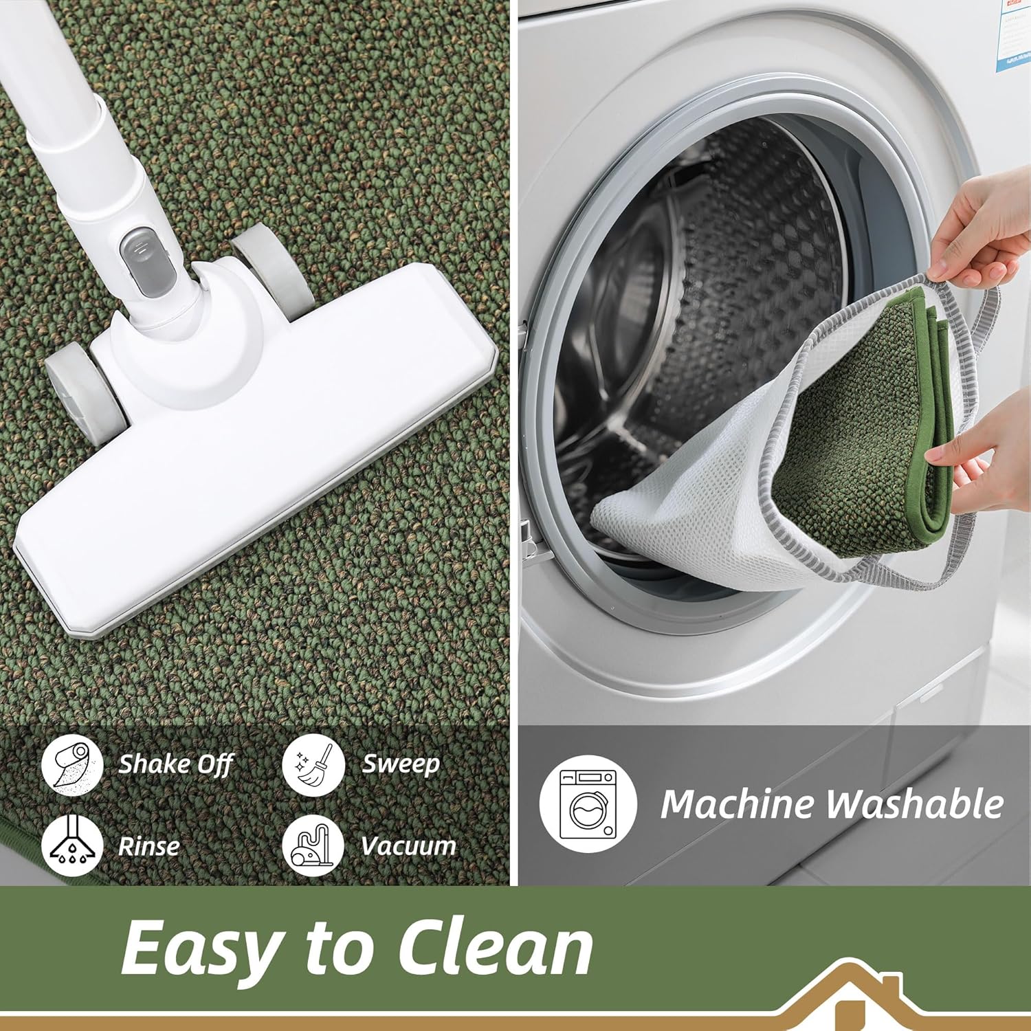 - Easy to Clean: The stain and fade resistant kitchen runner rug can be easily cleaned by a broom or vacuum cleaner. For a deeper clean, machine wash separately in cold water, using mild detergent. Tumble dry, low heat. Do not use bleach or fabric softener