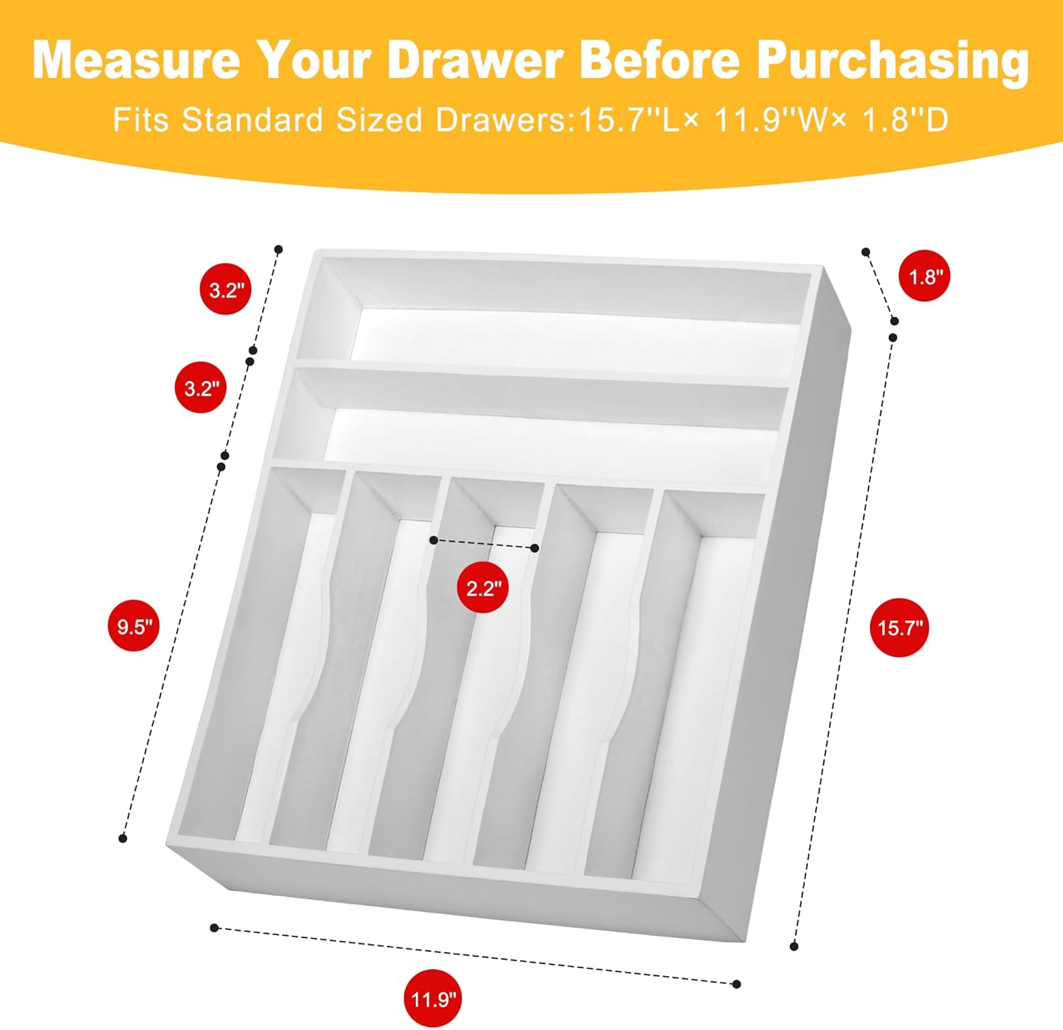 - â ăKeep Your Home TidyăIt's the solution you've been seeking for those all-too-common piles of utensils and the ever-expanding junk drawer. Transform your cluttered kitchen drawers into oases of order with our bamboo drawer organizer. Sized at 15.7âx11.9", our organizer features seven spacious compartments, each 1.8â deep slots, designed to conveniently organize and store your kitchen cutlery and rearrange flatware for a tidy, clean look.