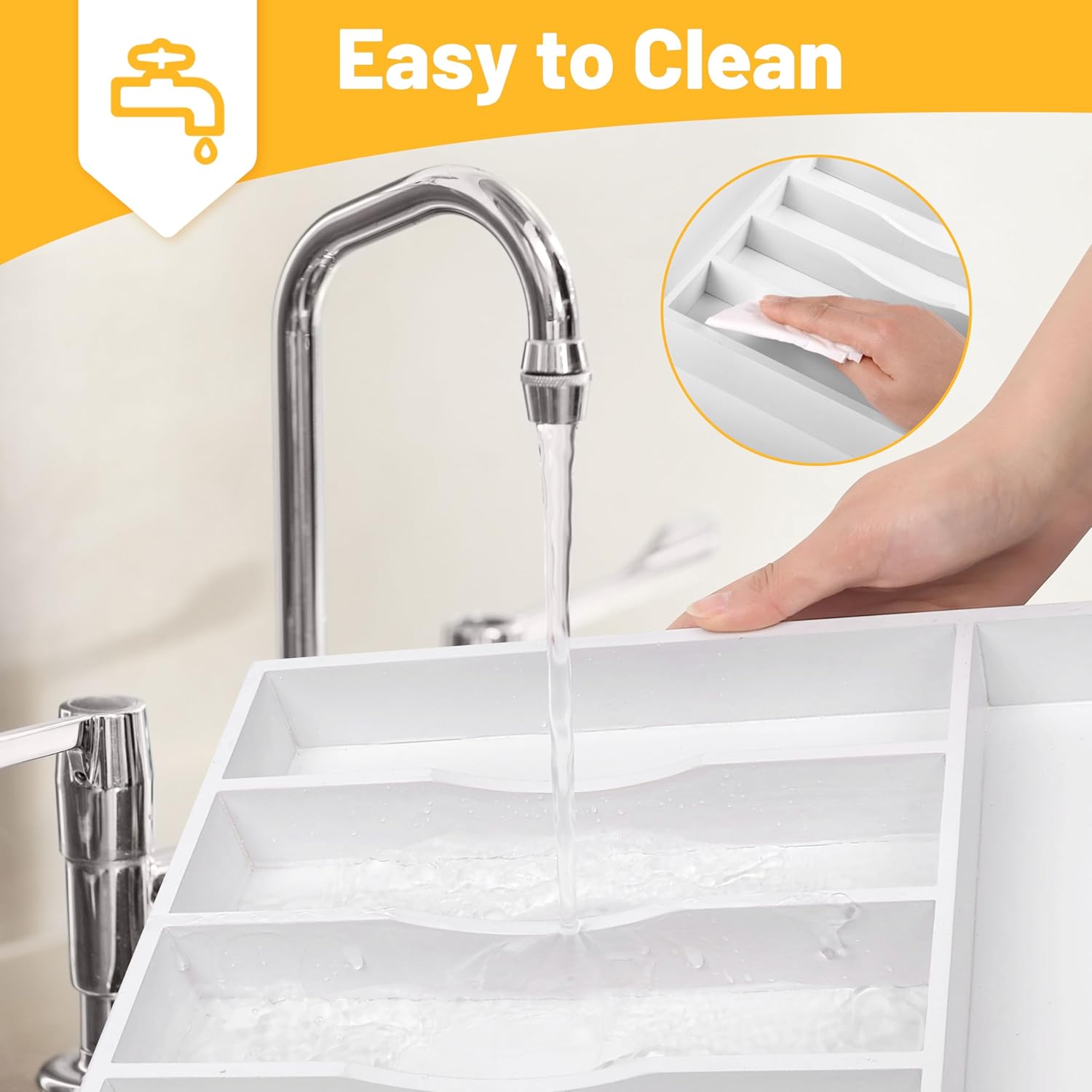 - â ăSturdy and Well-madeăOur silverware tray for drawer is made of minimally refined natural bamboo, a renewable, sustainable source, making them a green choice, with the age of over 4 years, which makes the silverware holder durable enough for long time use. Unlike the plastic and metal drawer organizer, our flatware & utensil is water & odor resistant, the silverware organizing tray is perfect for years of use, especially in kitchens where things can get messy quickly.