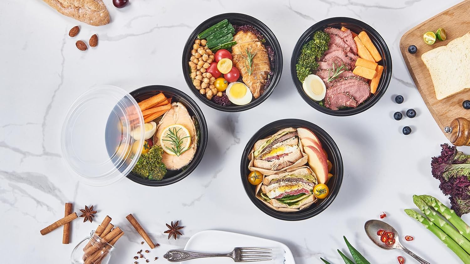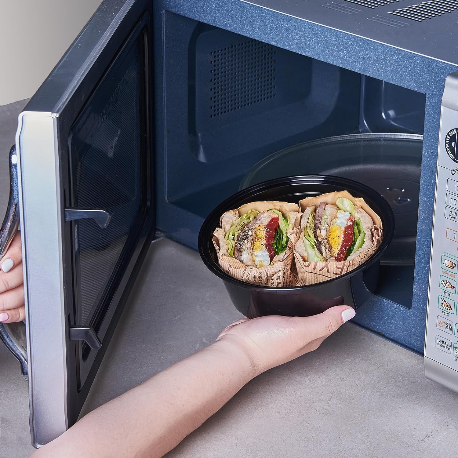- MEAL-PREP MADE EASY: Black Salad bowls Deli Food Storage Containers with Clear Airtight Lids Leak Resistant, stack neatly, and feature a microwaveable bottom to make meal planning a breeze