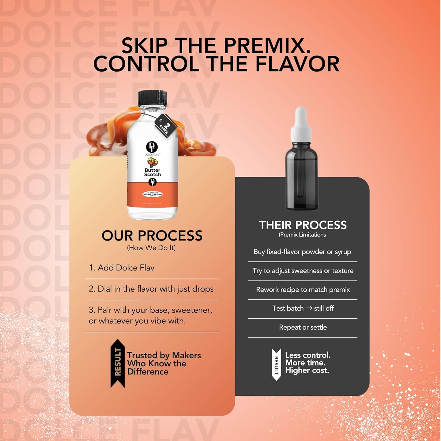 Dolce Flav Natural Butterscotch Extract 2 oz – Kosher, Sugar-Free, Concentrated Rich Butterscotch Flavoring for Baking, Beverages & Desserts, Includes Measured Dropper