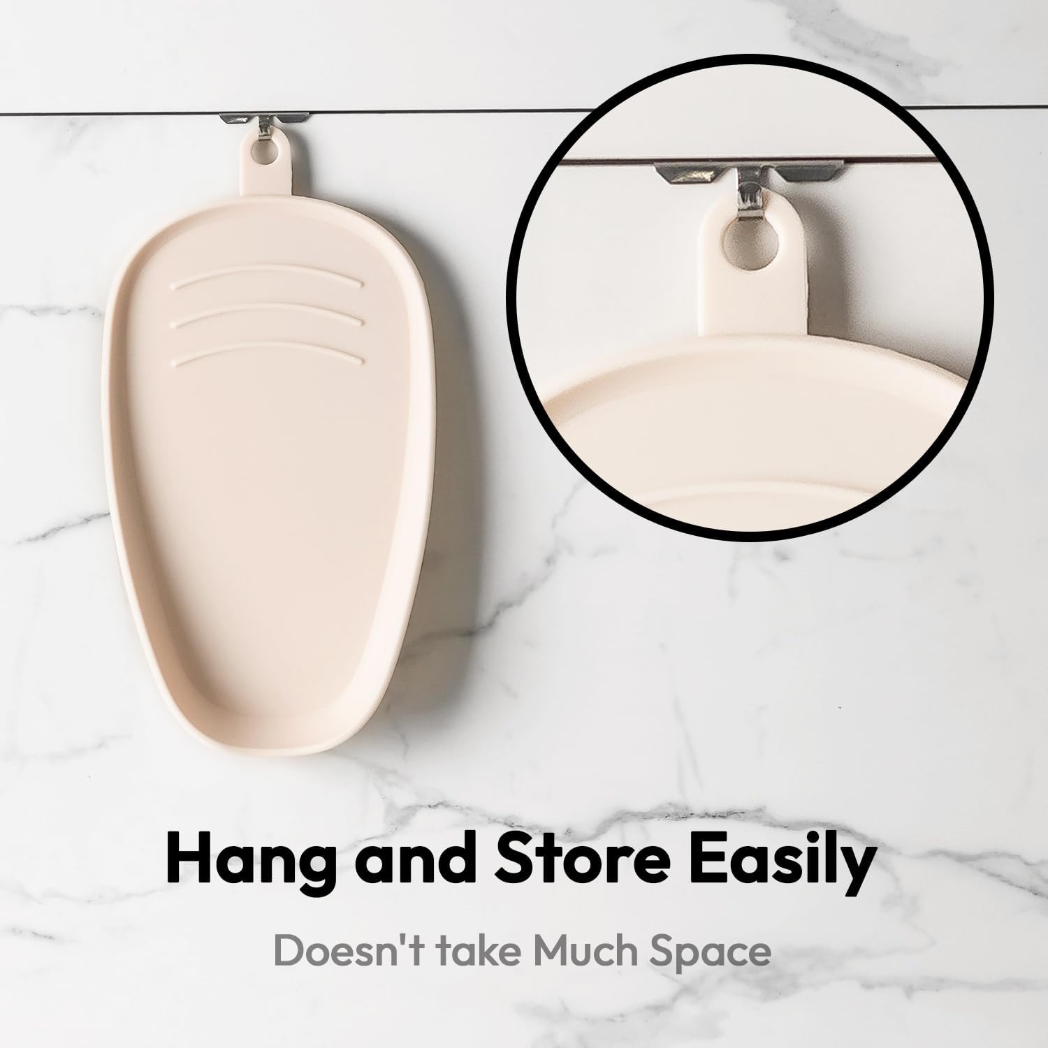 Carrotez Large Silicone Spoon Rest for Stove Top - Unbreakable Heat Resistant Silicone Utensil Rest for Kitchen Countertop - Oversized Wide Non-Scratch Spoon Holder for Camping - Ivory