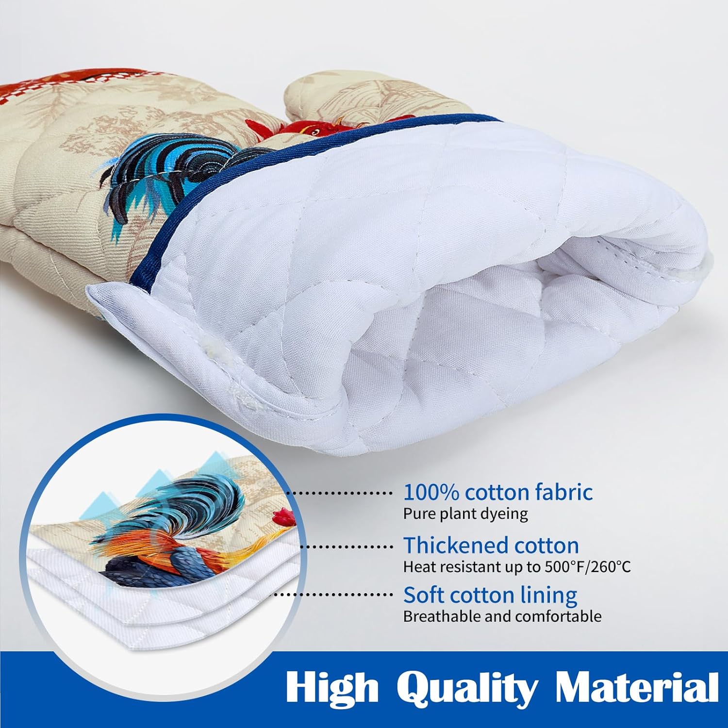 Rooster Oven Mitts and Pot Holders Sets 100% Cotton Heat Resistant, Extra Long Oven Gloves Potholder for Kitchen Cooking Baking Housewarming