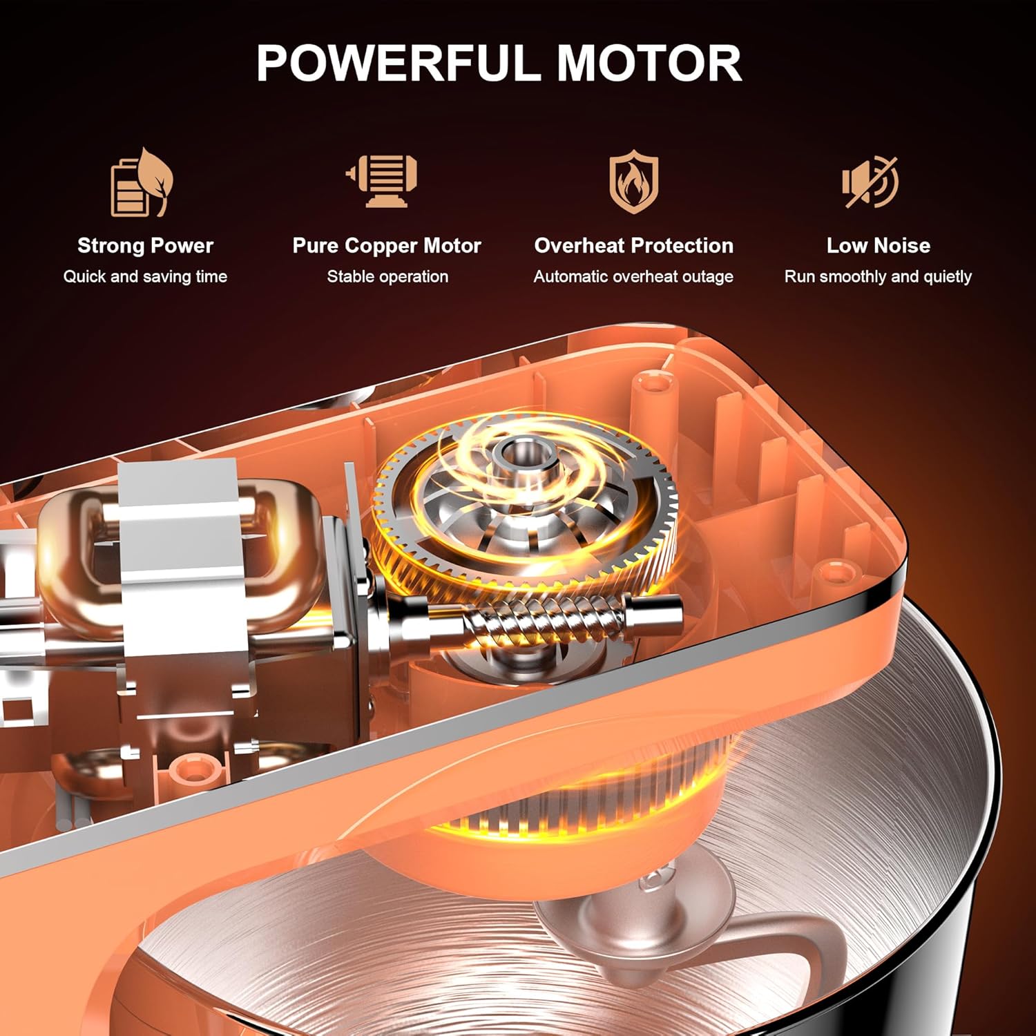 • Versatile Attachments Included: Our baking mixer comes with a dough hook, whisk, beater and a silicone spatula, enabling you to tackle a variety of recipes, from heavy dough to light meringues, ensuring professional-quality results every time