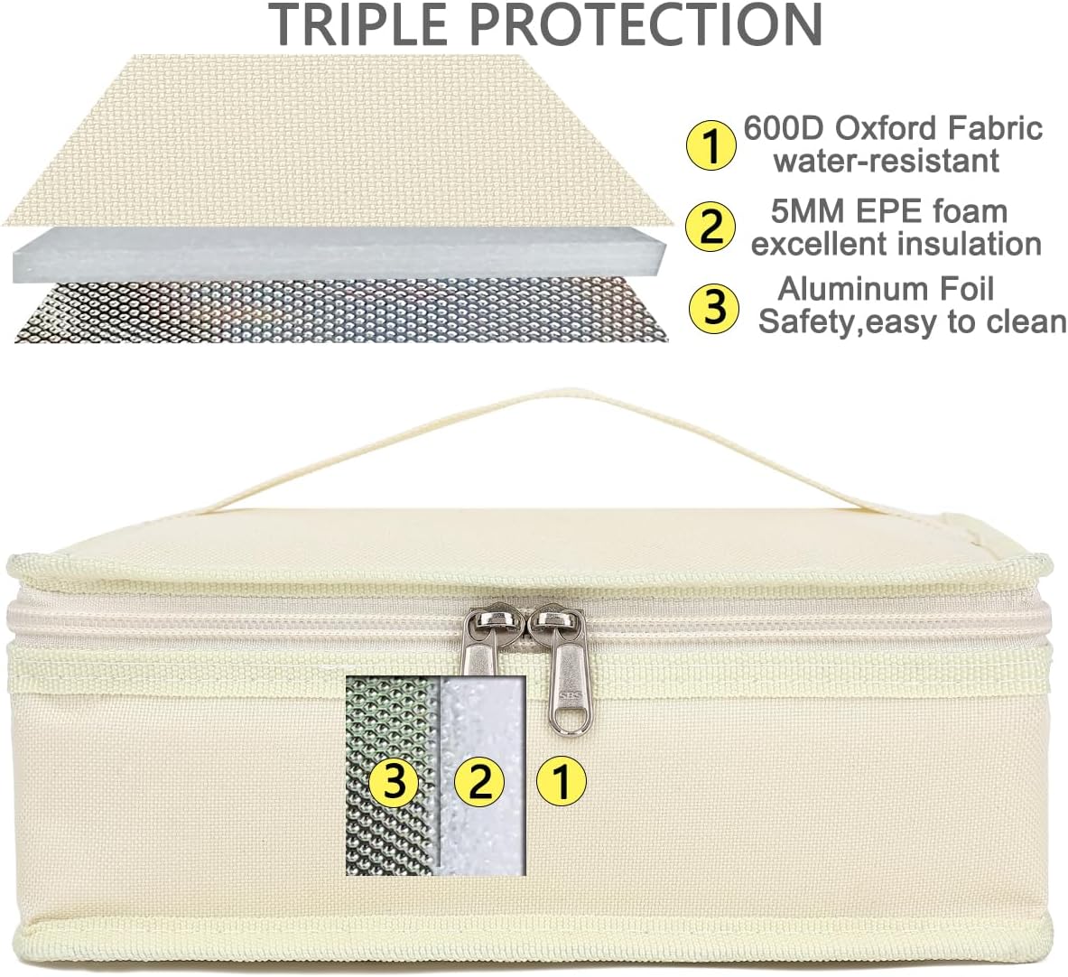 - ✿ Material:The FlowFly reusable Lunch Bag is made of the highly durable 600D Polyester,food grade aluminum foil inside, padded with extra thick 5mm PE foam and sturdy zippers.