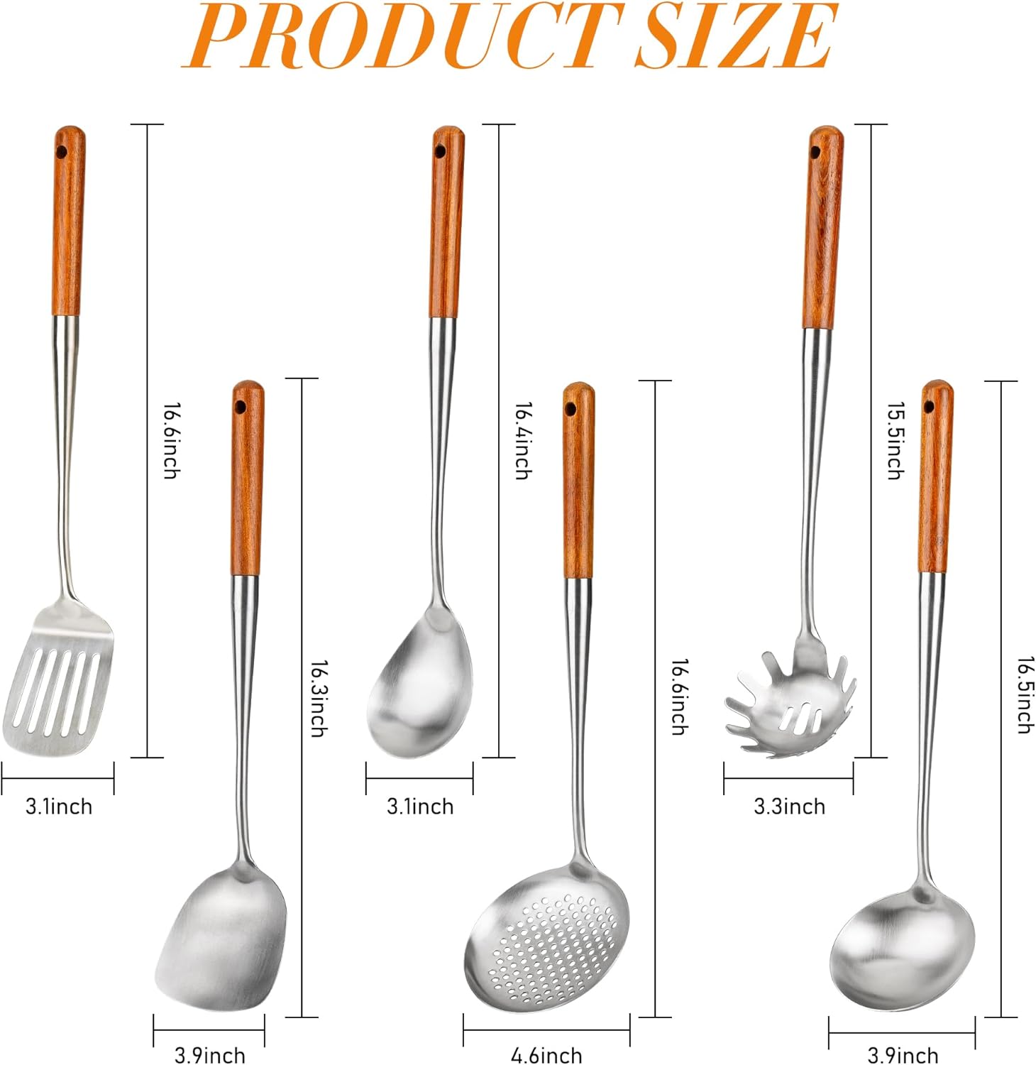 - Size of Wok Utensils Set:16-17 inches length,enough length ensures that we keep our hands away from the hot wok while making delicious meals with ease.Doesn't react with foods and ensure them delicious