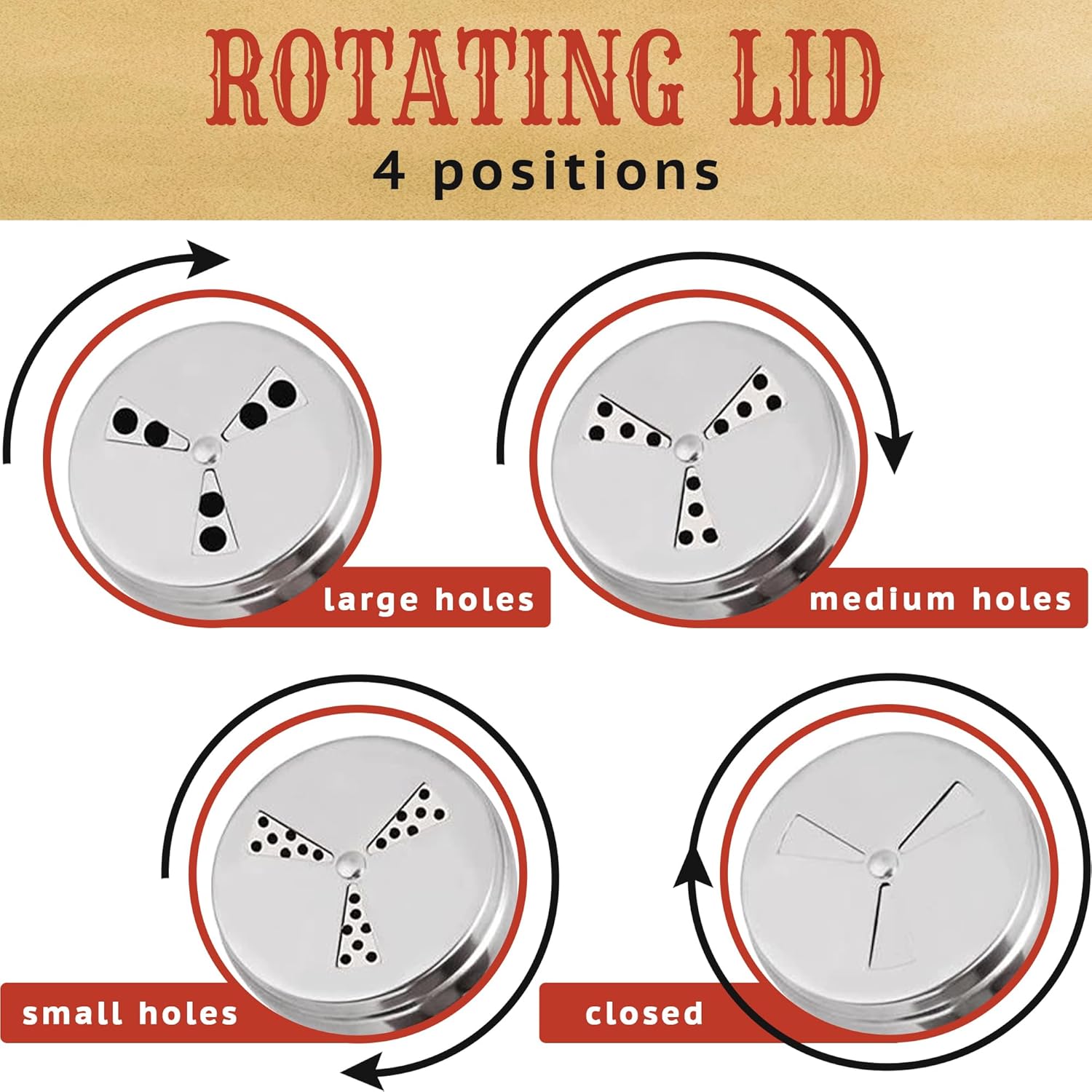CUSINIUM [Pack of 6] 14 oz Seasonings Spice Shakers - BBQ Dry Rub Shakers - Cooking Dredge with Adjustable Fan-Style Lid and Handles