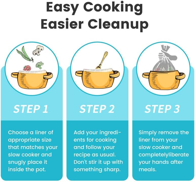 - 【Small Size & Versatile Use】Each cooking bag fits a variety of ingredients and most slow cookers, making it perfect for everything from family meals to everyday cooking. You can even cook two dishes simultaneously in the same pot