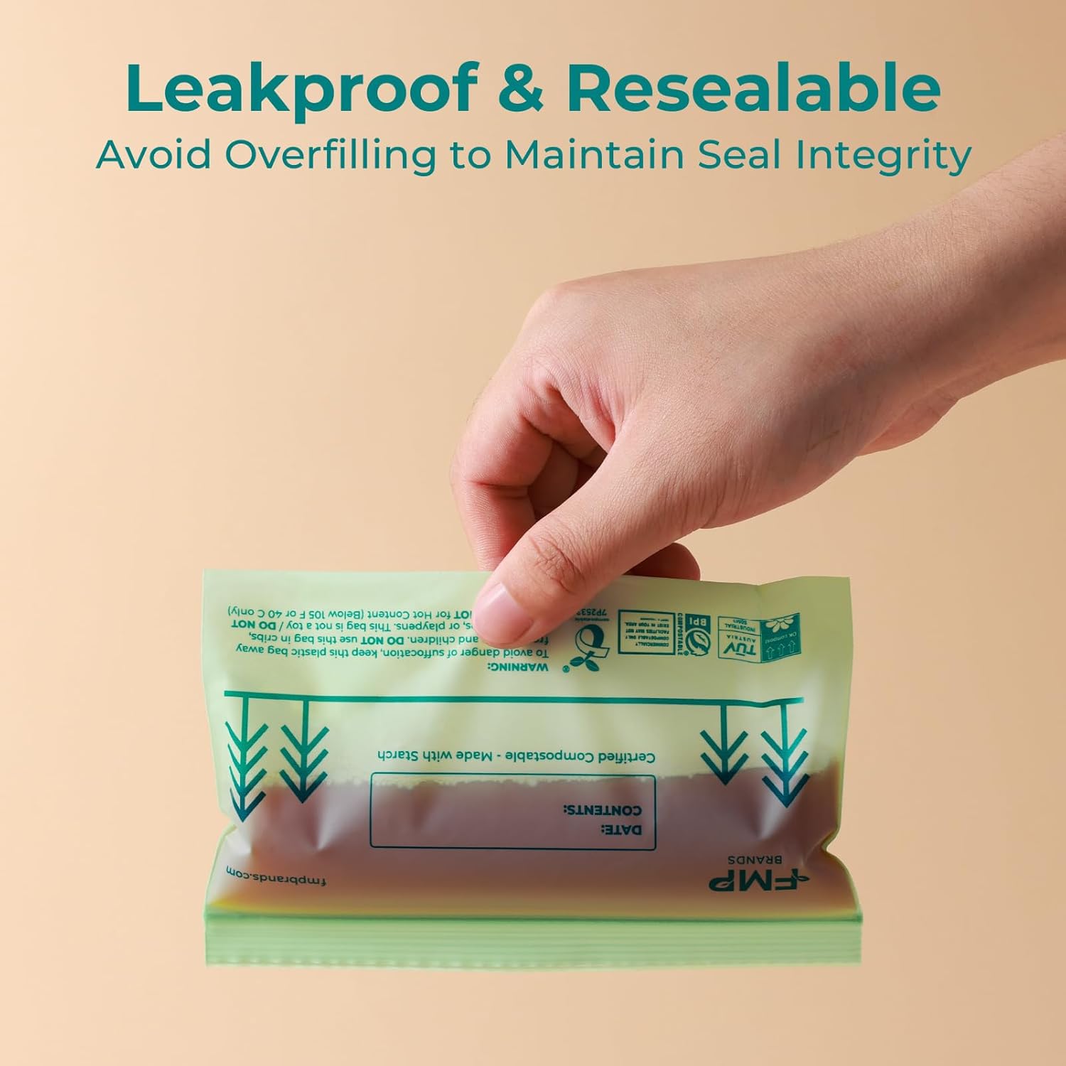 - Freezer Safe & Durable: These compostable bags are durable and leak-proof, providing a reliable solution for storing and transporting food without the risk of spills or leaks.