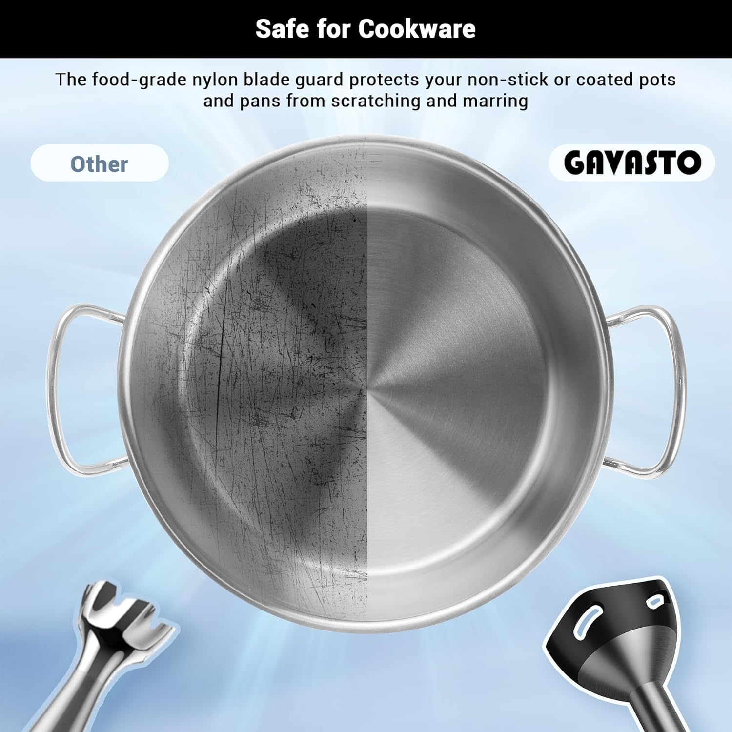 - Experience Durable Power: GAVASTO JHB-328 Immersion Blender is equipped with a brushless motor, ensuring durable and stable power. Unlike other inexpensive brands that use low-quality motors leading to overheating and reduced service life with prolonged use, we offer an extended warranty period because we have full confidence in our product's quality.