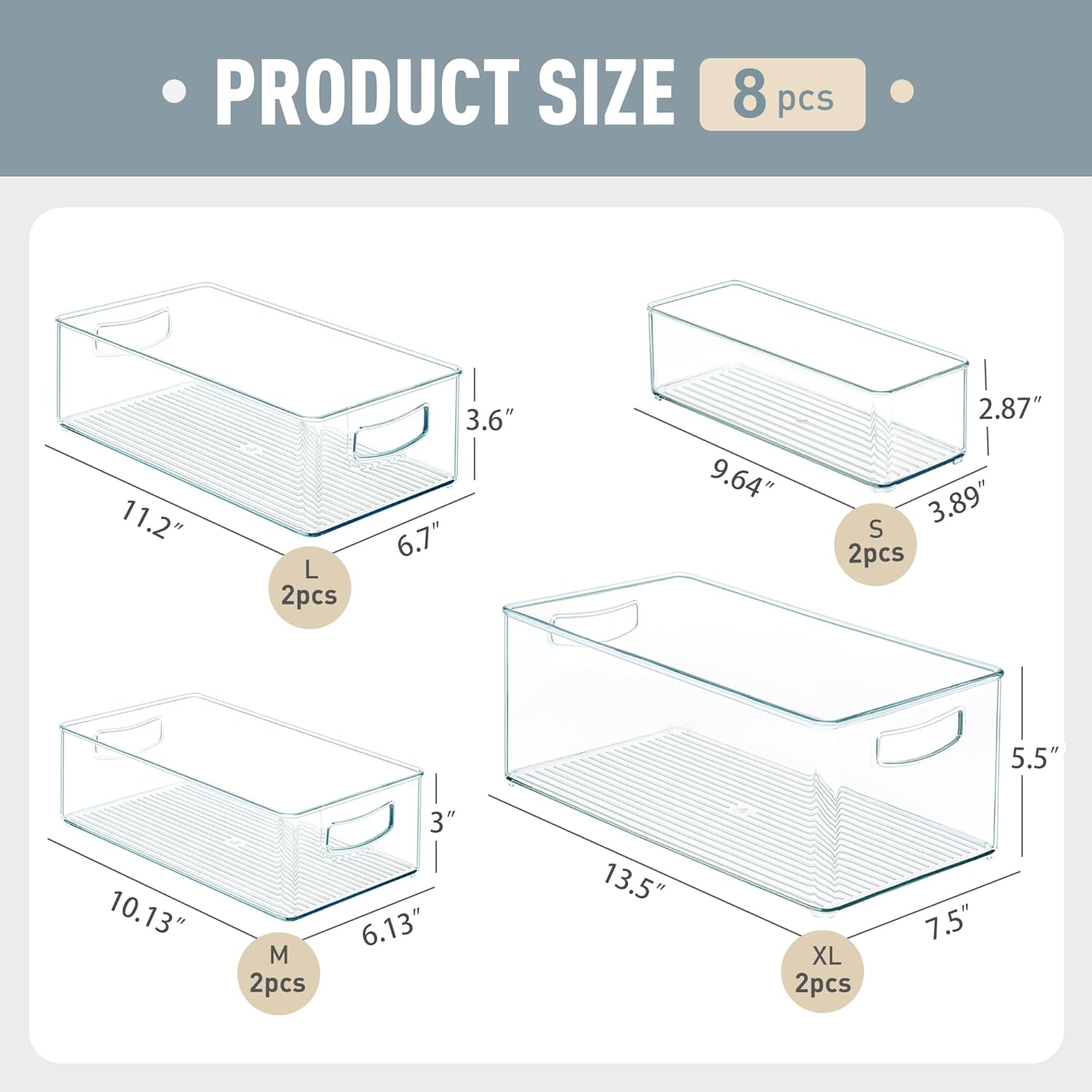 8 PACK Freezer Organizer Bins Clear Stackable Storage Bins with Side Handles for Fridge Organization and Storage Home Organization Must Haves