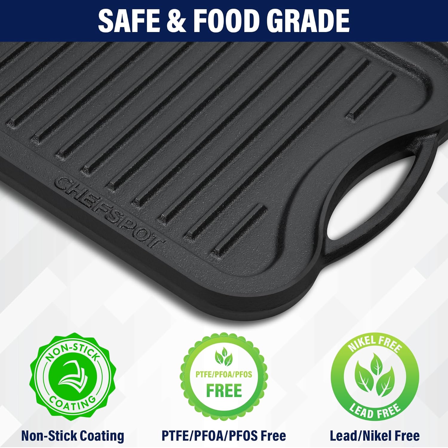 - Reversible Design: Features a dual-function surface; smooth side for pancakes and eggs, ridged side for grilling with charred marks
