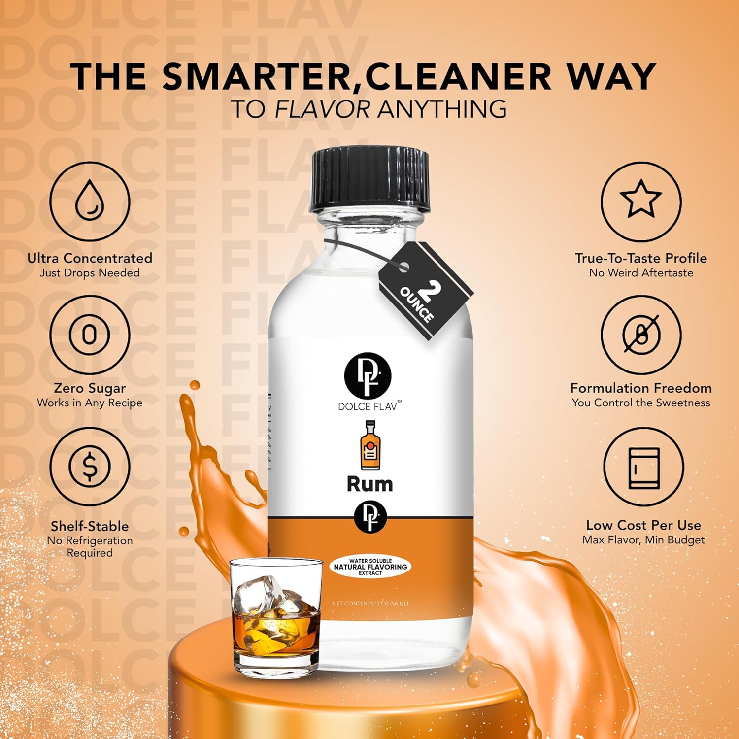 Dolce Flav Natural Rum Extract – 2 Ounce Water-Soluble Kosher, Sugar-Free, Concentrated Dark Rum Flavoring for Baking, Cocktails & Desserts, Includes Measured Dropper