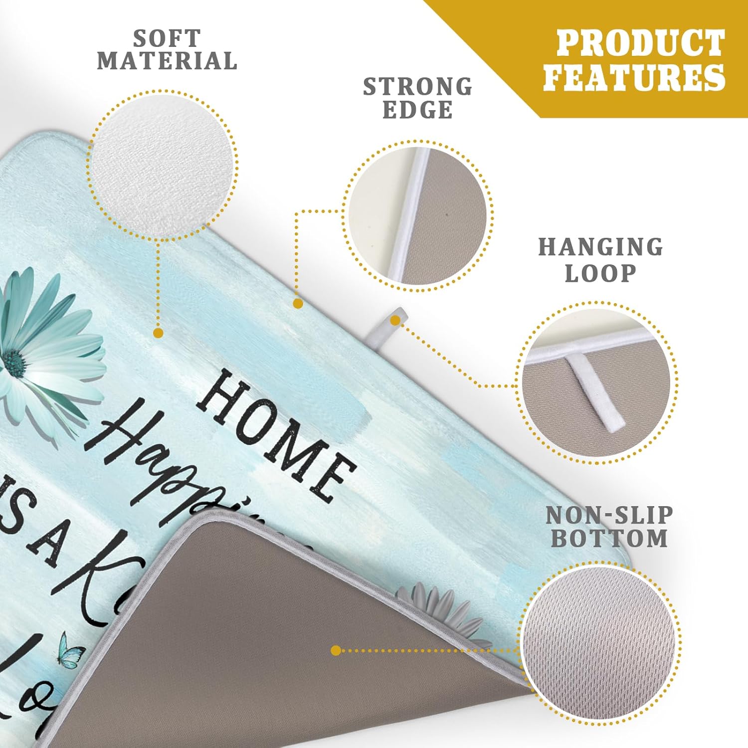 Blue Daisy Dish Drying Mat 18x24 Inch Love Kitchen Absorbent Microfiber Washable Fast Drying Pad Dishes Rack Mat for Kitchen Counter