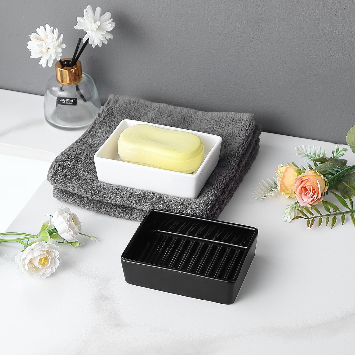 - 【Enhanced Drainage】Featuring raised corners inside, our soap tray help reduce the contact between the soap and the surface, allowing for better ventilation and quicker drainage. This design keeps the soap dry and prolongs soap use.