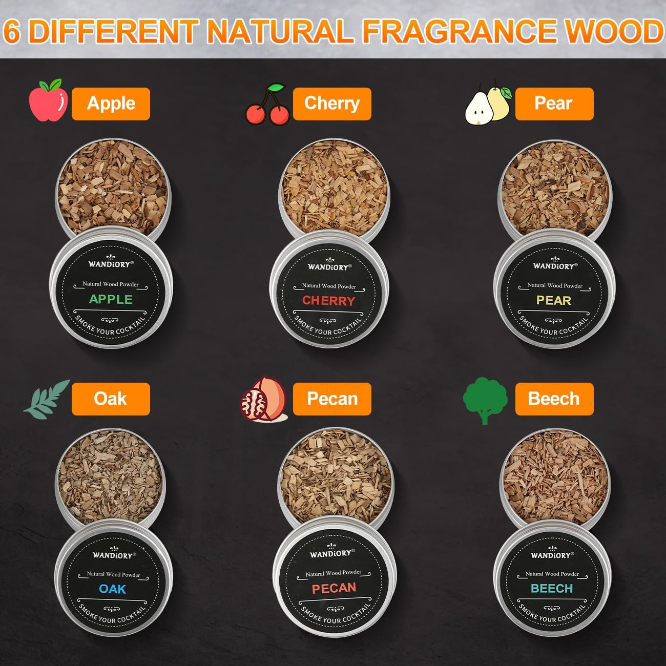 - 【Six Flavorful Wood Chips for Customized Aromas】Enjoy six unique wood chip flavors—including cherry, oak, and apple—offering endless possibilities to experiment and create your perfect smoky blend. From bold to subtly sweet, personalize your drinks with a flavor that suits your mood.