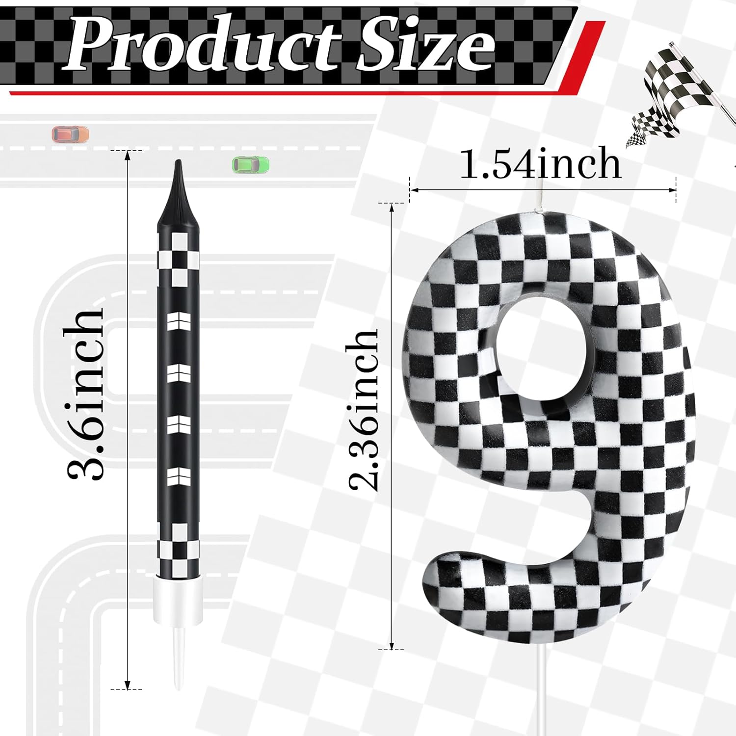 13 Pcs Racing Cars Themed Birthday Candles Black and White Race Number 9 Checkered Candle Cake Topper for Racing Car Party Decoration Supplies (Number 9)
