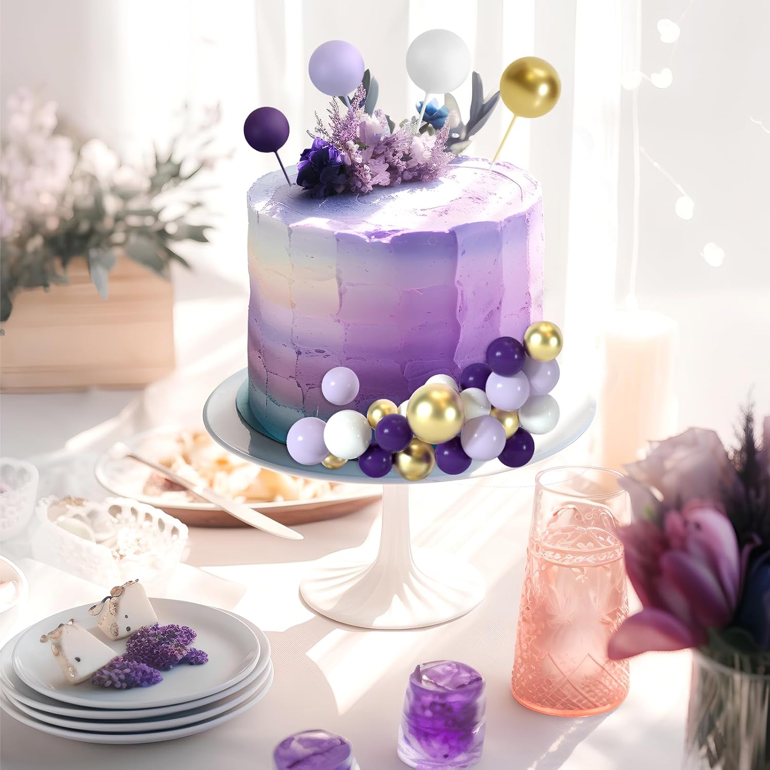 48 Pcs Balls Cake Topper Decorations Balloon Cupcake Toppers Foam Cake Topper Balls Cake Balls Decorations for Birthday Party Wedding Cake Decorating (Purple, Light Purple, White, Gold)