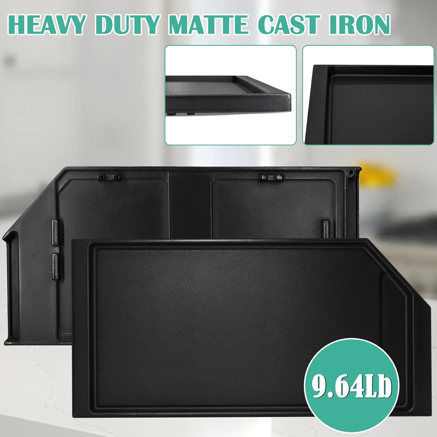 - ► JXGRIDL230 Griddle Dimensions - 19 1/4" L x 9 1/2" W x 1" H; Material: Made of Durable and Heavy Duty Cast Iron. ► Premium Made - This jxgridl230 ge griddle is made of heavy duty cast iron material. Net weight 9.64Lb. Thick and sturdy, No coating, No peeling, Healthier; Smooth surface, Evenly heated; Natural non-stick cooking.