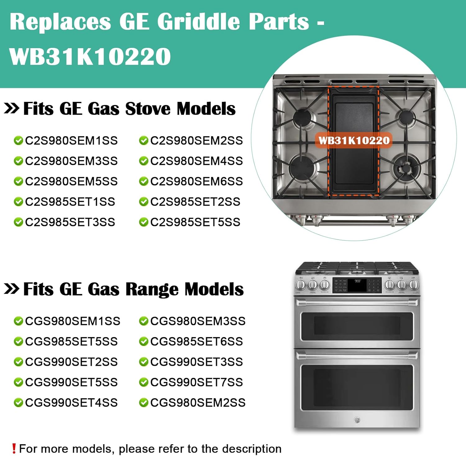 - ► Fits GE Gas Stove Griddle Replacement - GE C2S980SEM1SS, C2S980SEM2SS, C2S980SEM3SS, C2S980SEM4SS, C2S980SEM5SS, C2S980SEM6SS, C2S985SET1SS, C2S985SET2SS, C2S985SET3SS, C2S985SET5SS, C2S985SET6SS, C2S985SET7SS, C2S985SET8SS, C2S985SET9SS, C2S985SET4SS. ► Replaces GE Griddle Parts - WB31K10220, AP4344664, 1474231, AH2321577, EA2321577, PS2321577.