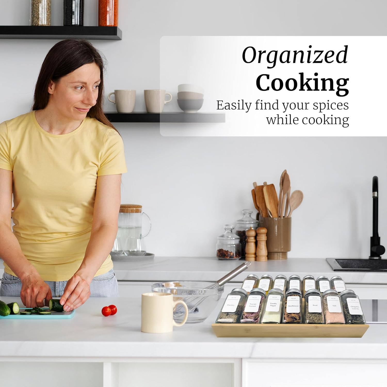Spice Drawer Organizer with Jars and Labels, Bamboo Spice Rack For Drawer, Spice Organization For Cabinet Drawer, Spice Organizer For Drawer, Bamboo Drawer Organizer, Spice Organization For Drawer