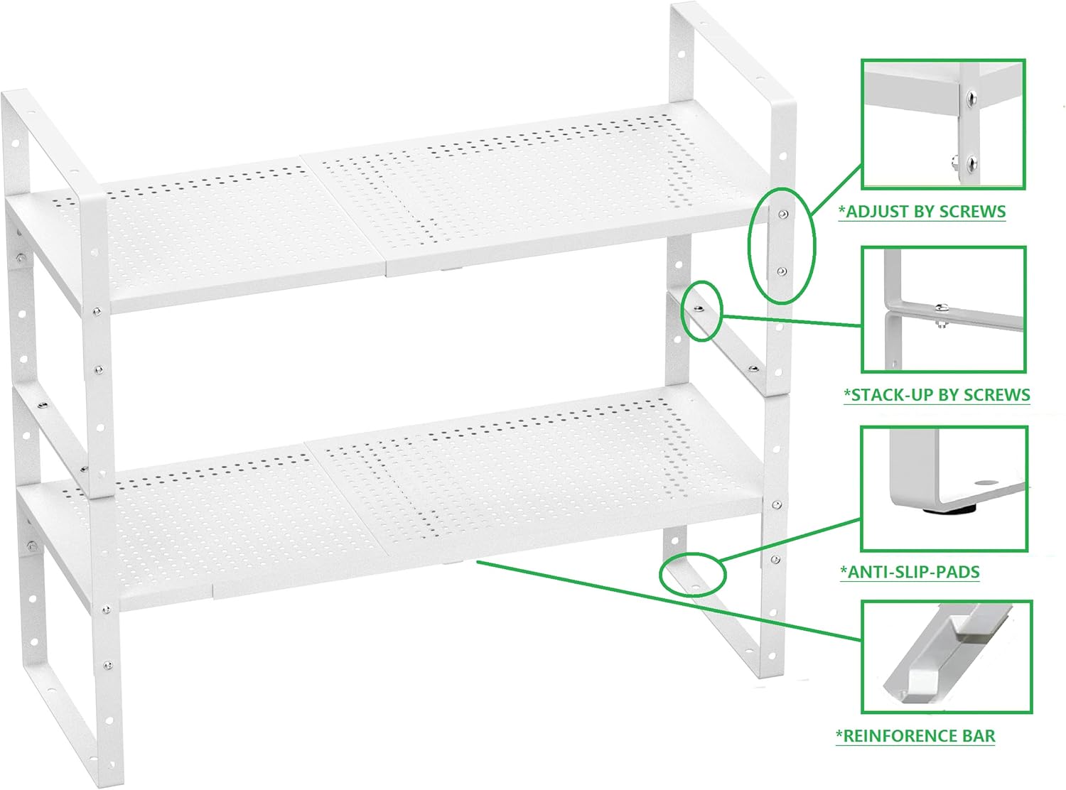 Expandable Shoe Rack Stackable Metal Pantry Storage Shelves Stand Adjustable Height Cabinet Shelf Organizer Racks Spice Shelving(1PACKS/WHITE,LARGE)
