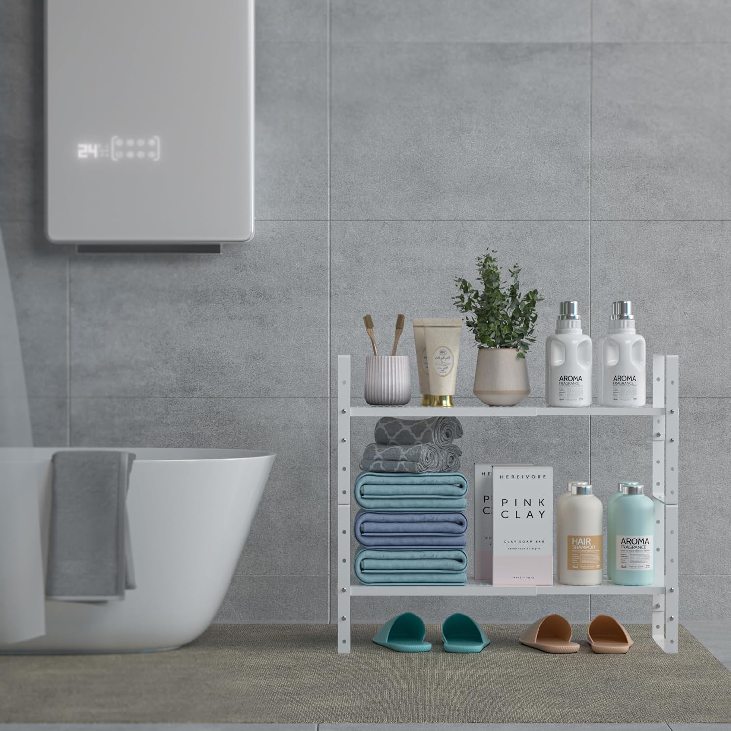 Expandable Shoe Rack Stackable Metal Pantry Storage Shelves Stand Adjustable Height Cabinet Shelf Organizer Racks Spice Shelving(2PACKS/WHITE,LARGE)