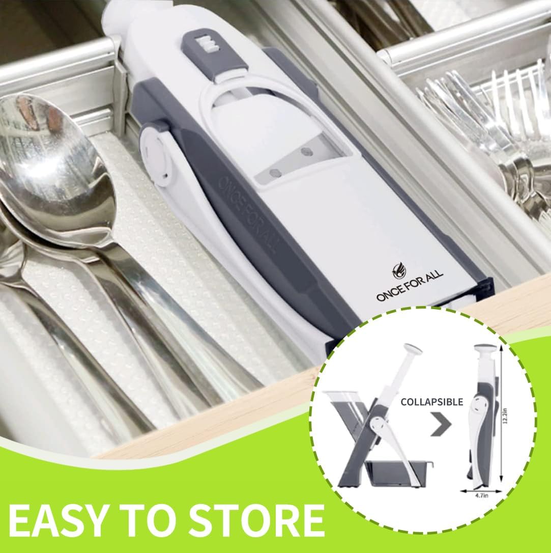 - VERSATILE: ONCE FOR ALL's vegetable slicer offers 8 mode of thickness for slicing at once no need to change the blade. Adjustable thickness 0.1-8mm great for quickly slicing potatoes, carrots, cucumbers, onions…
