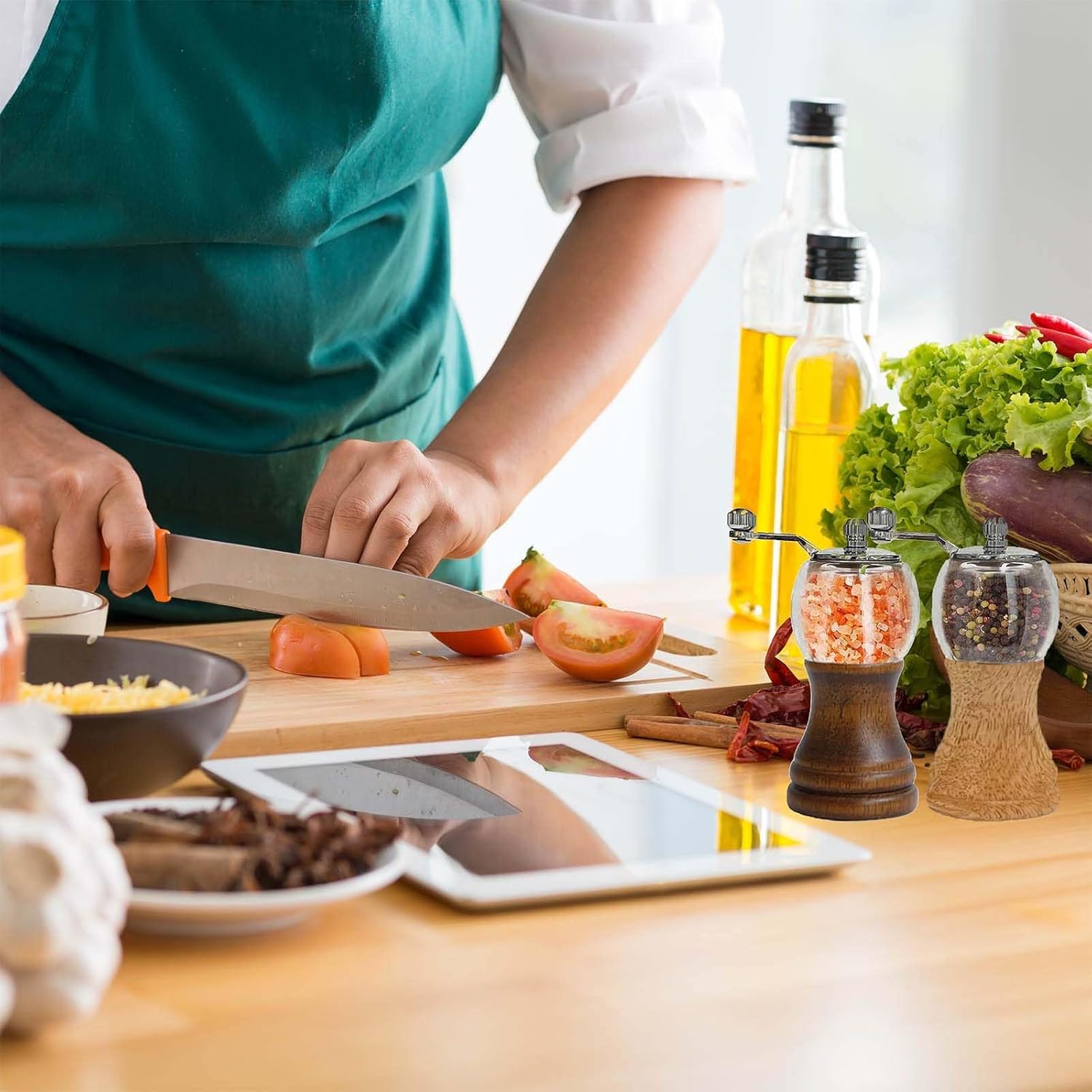 - 4、NATURAL WOOD MATERIAL - This manual salt and pepper grinder set is made of natural oak wood, stainless steel and ceramic grinding mechanism, Acrylic materia,non-corrosive, you can use safely.This natural wooden salt and pepper mill is a elegant and fancy decoration in kitchen.
