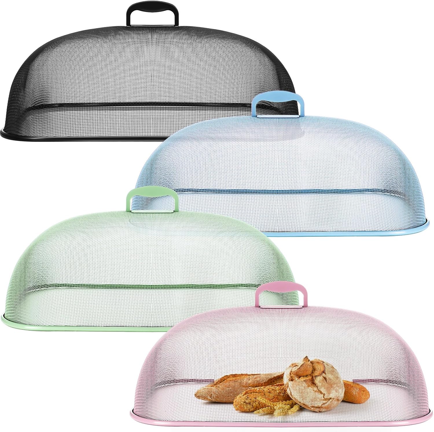 Hicarer 4 Pcs Metal Mesh Screen Food Cover for Outdoors Set Large 18.5 Inch Mesh Food Tents for Outdoor Mesh Food Covers Picnic Food Covers for Indoor Plate (Black, Blue, Green, Pink)