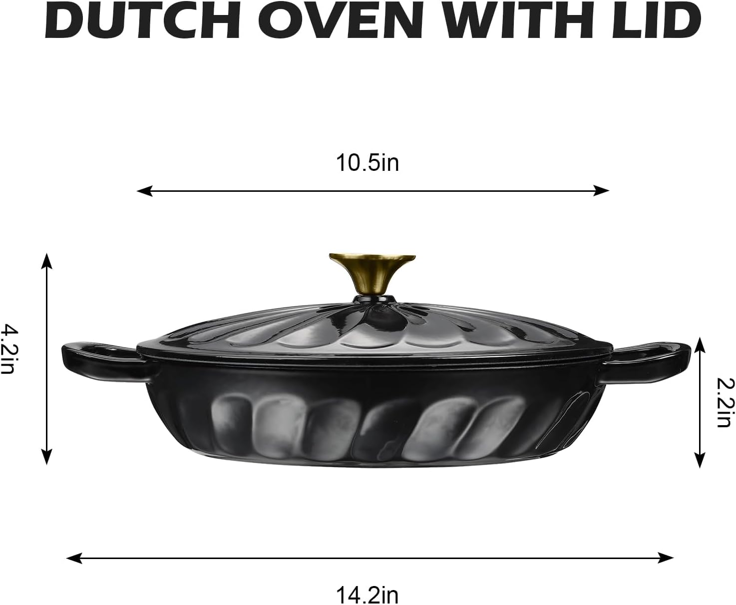 Enameled Cast Iron Braiser, 3.8 Quart Enamel Dutch Oven with Handles, Cast Iron Braiser Pan with Lid,Enameled Cookware (Black)