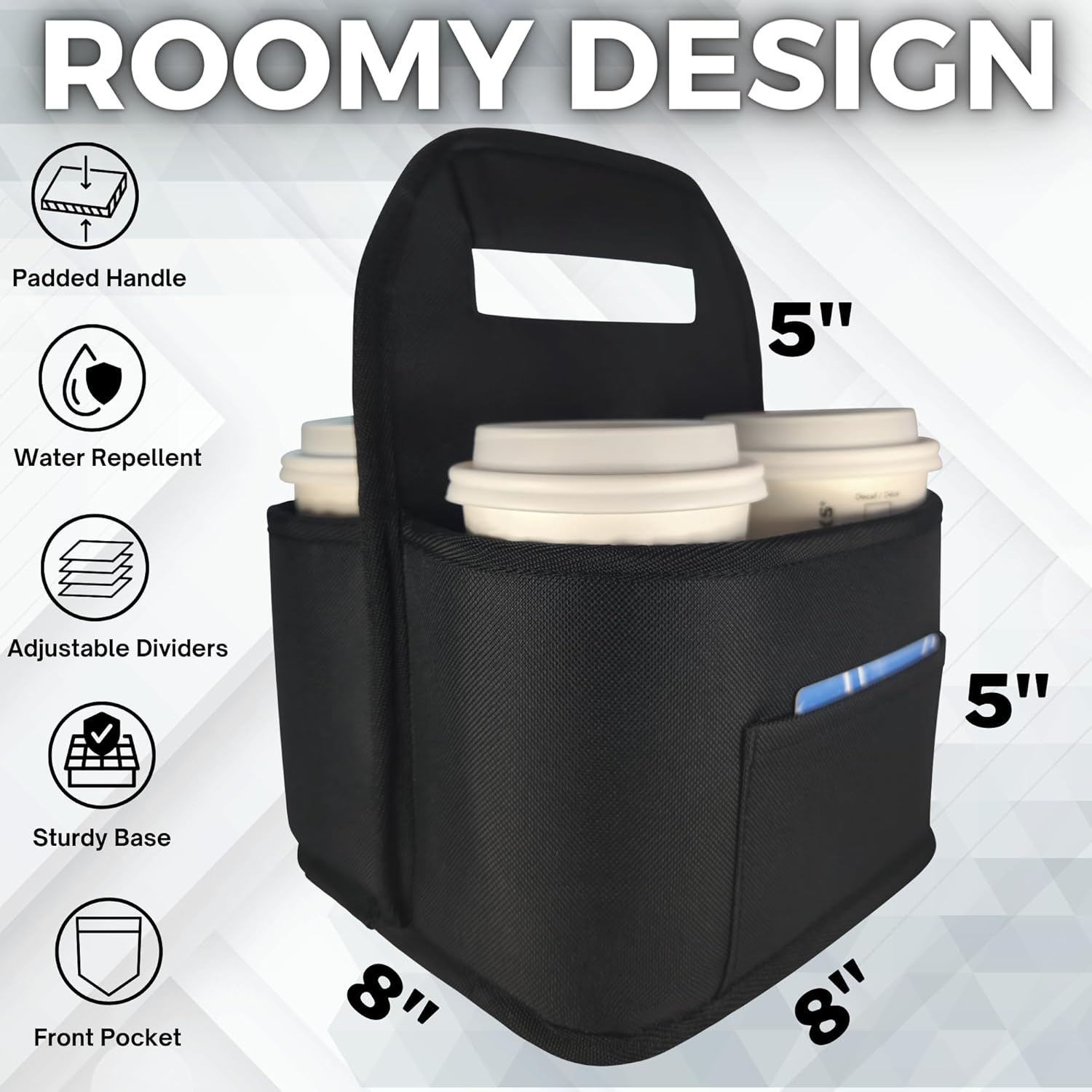 - Organized On-the-Go: Featuring organizer pockets, this carrier not only holds your drinks but also provides storage for small items like keys, sugar packets, or straws for added convenience.