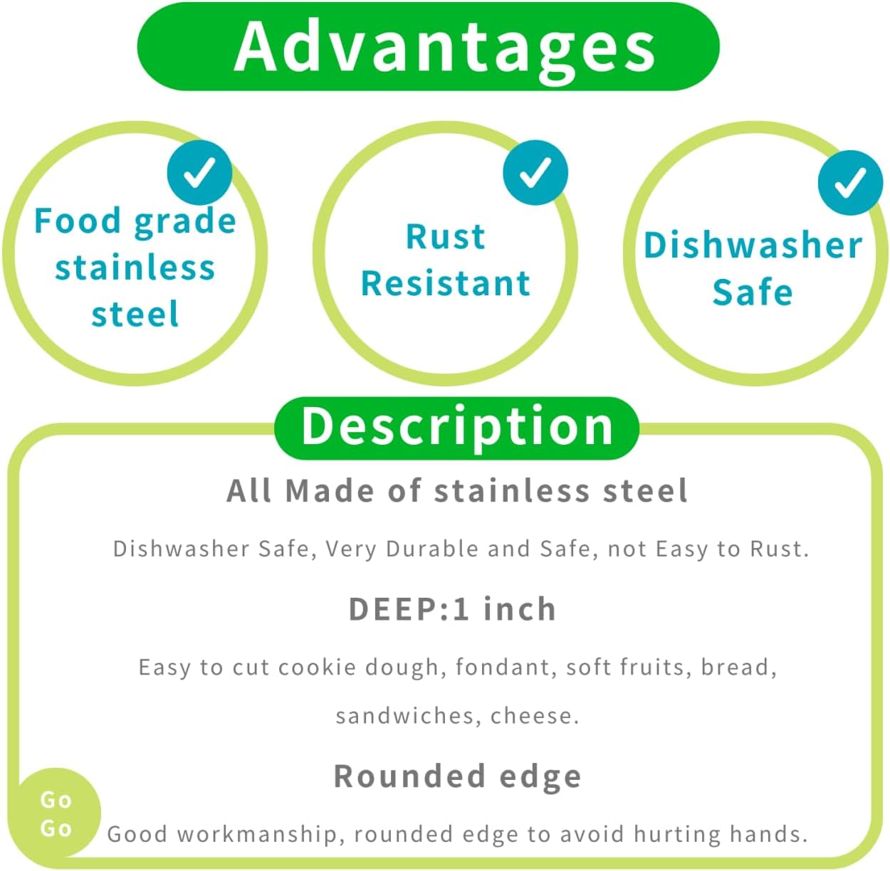 - DEEP:1 inch.Easy to cut cookie dough, fondant, soft fruits, bread, sandwiches, cheese.