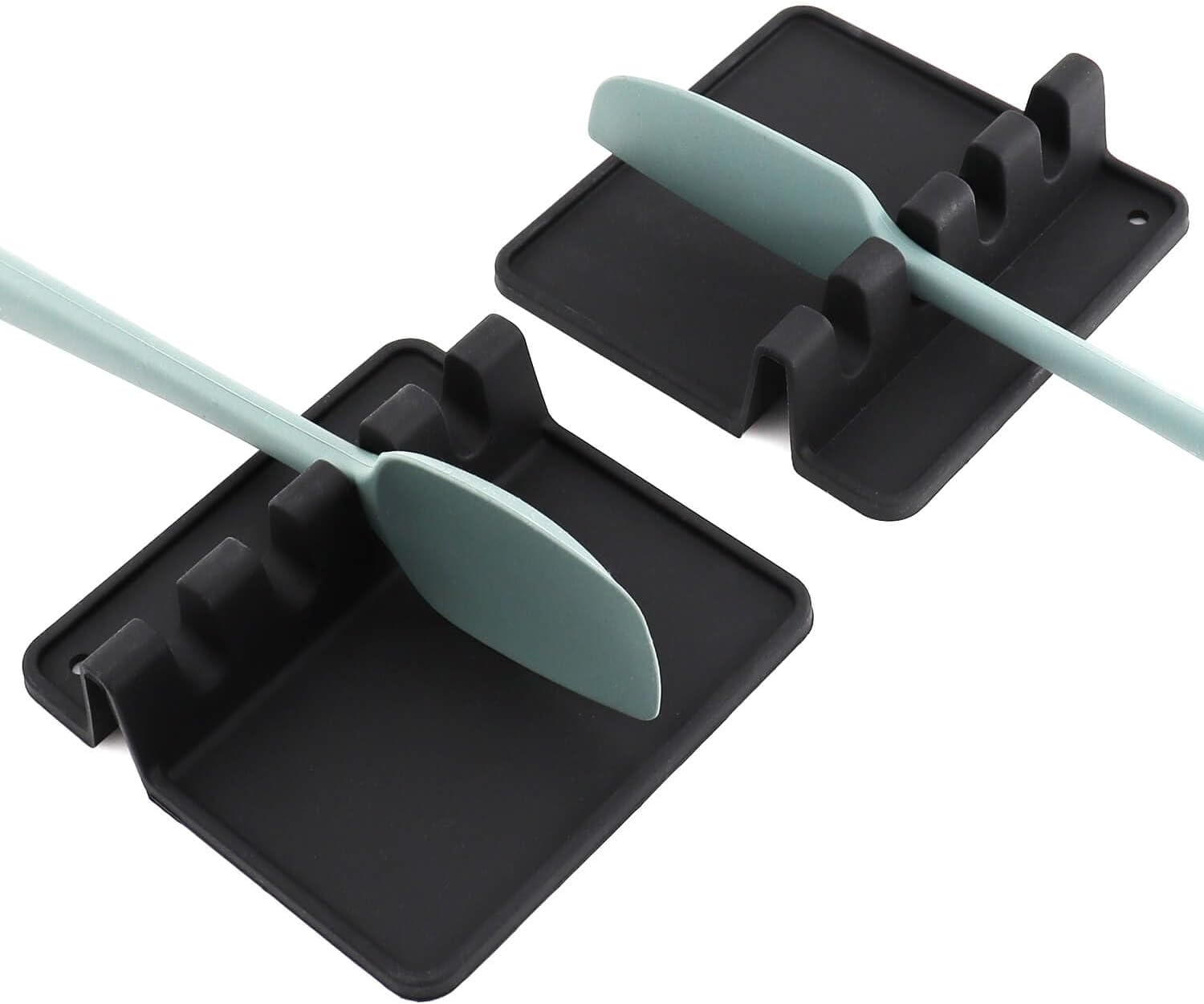 Kitchen Silicone Utensil Rest - BPA-Free Heat-Resistant Spoon Rest for Stove Top - Spoon Rest for Kitchen Counter Grill Utensil Holder-Black 2 Pcs