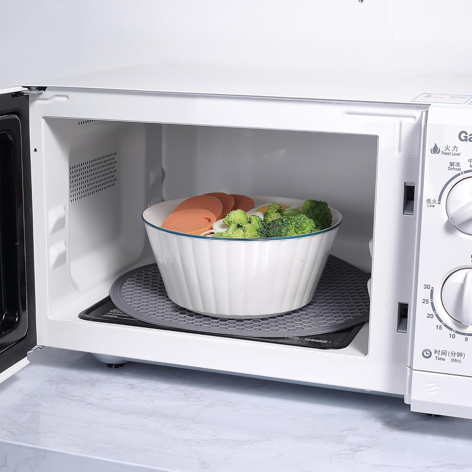To encounter Silicone Microwave Mat - Round 12" x 12" - Set of 4 Heat Resistant Multifunctional Mat, Splatter Guard, Trivet, Hot Pad, Pot Holder