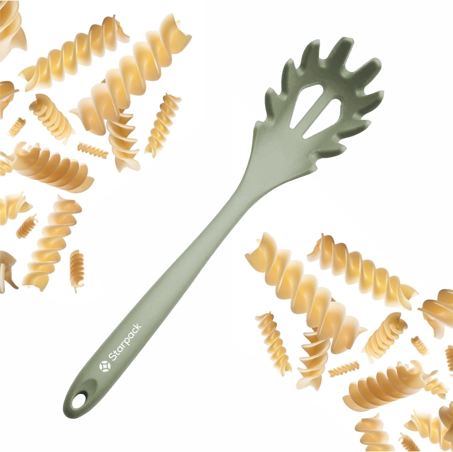 Starpack 'Forking Good' XL Premium Silicone Pasta Fork (13.5") - Spaghetti Spoon High Heat Resistant to 600°F - Silicone Pasta Spoon Strainer - Pasta Server Spoon with Teeth - Pasta Server Utensil