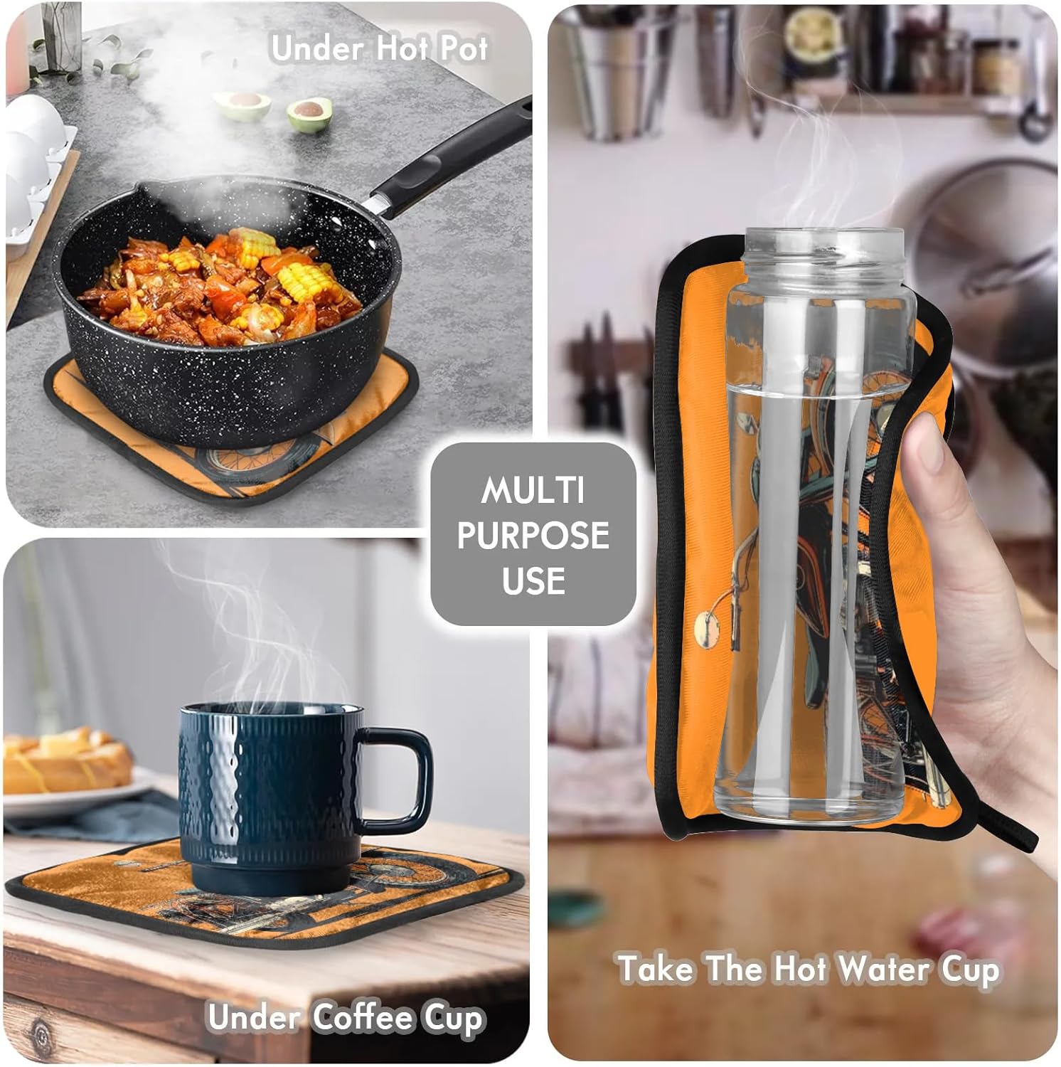 Motorcycle Theme Oven Mitts and Pot Holders Sets, 2 Pcs Decorative Kitchen Oven Glove for Cooking