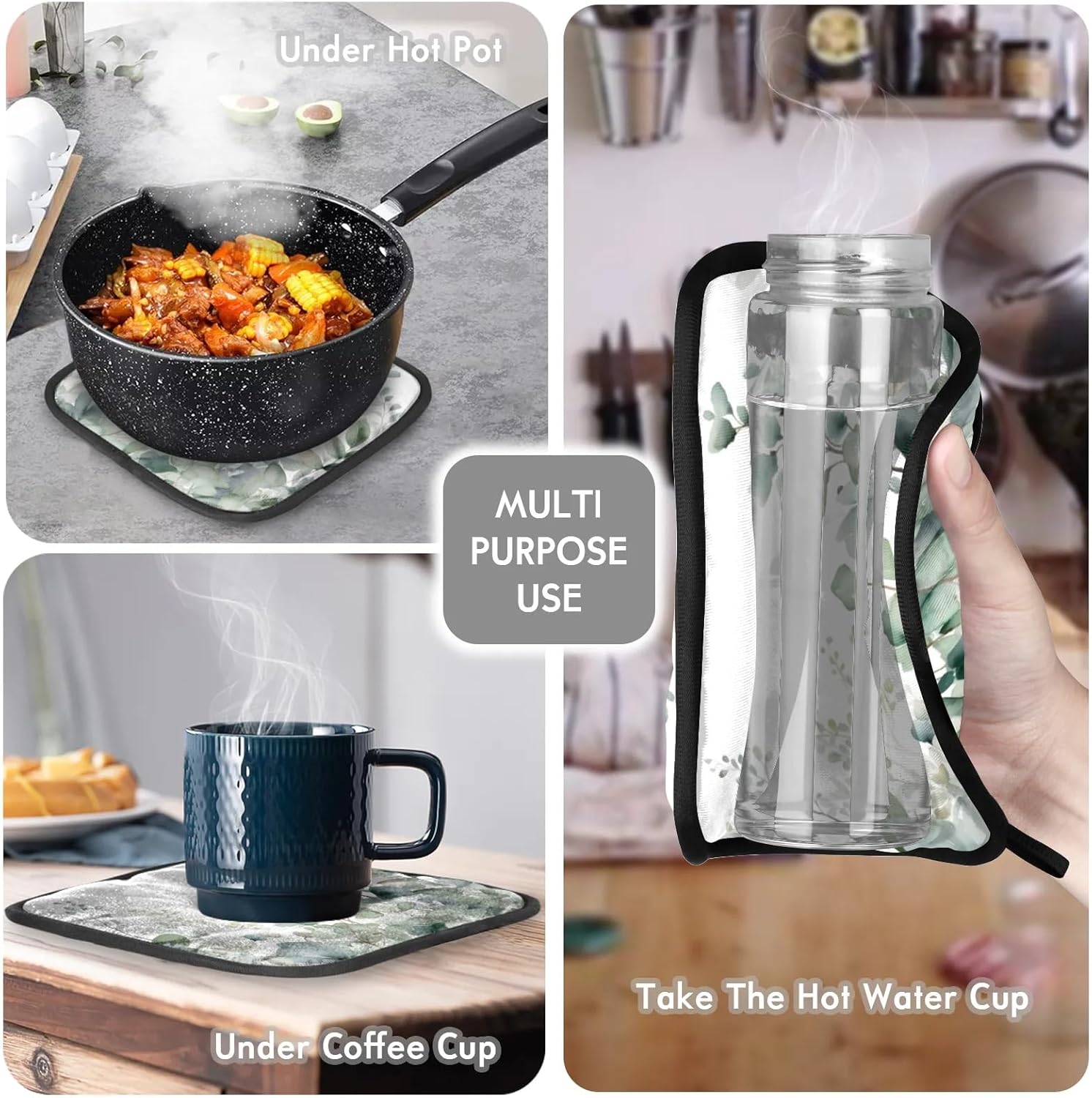 - HEAT RESISTANT: Our oven mitts and pot holders sets are made with a polyester faux linen fabric on the surface. The inside is filled with insulating needle cotton, thick and textured. It protects your hands from burns