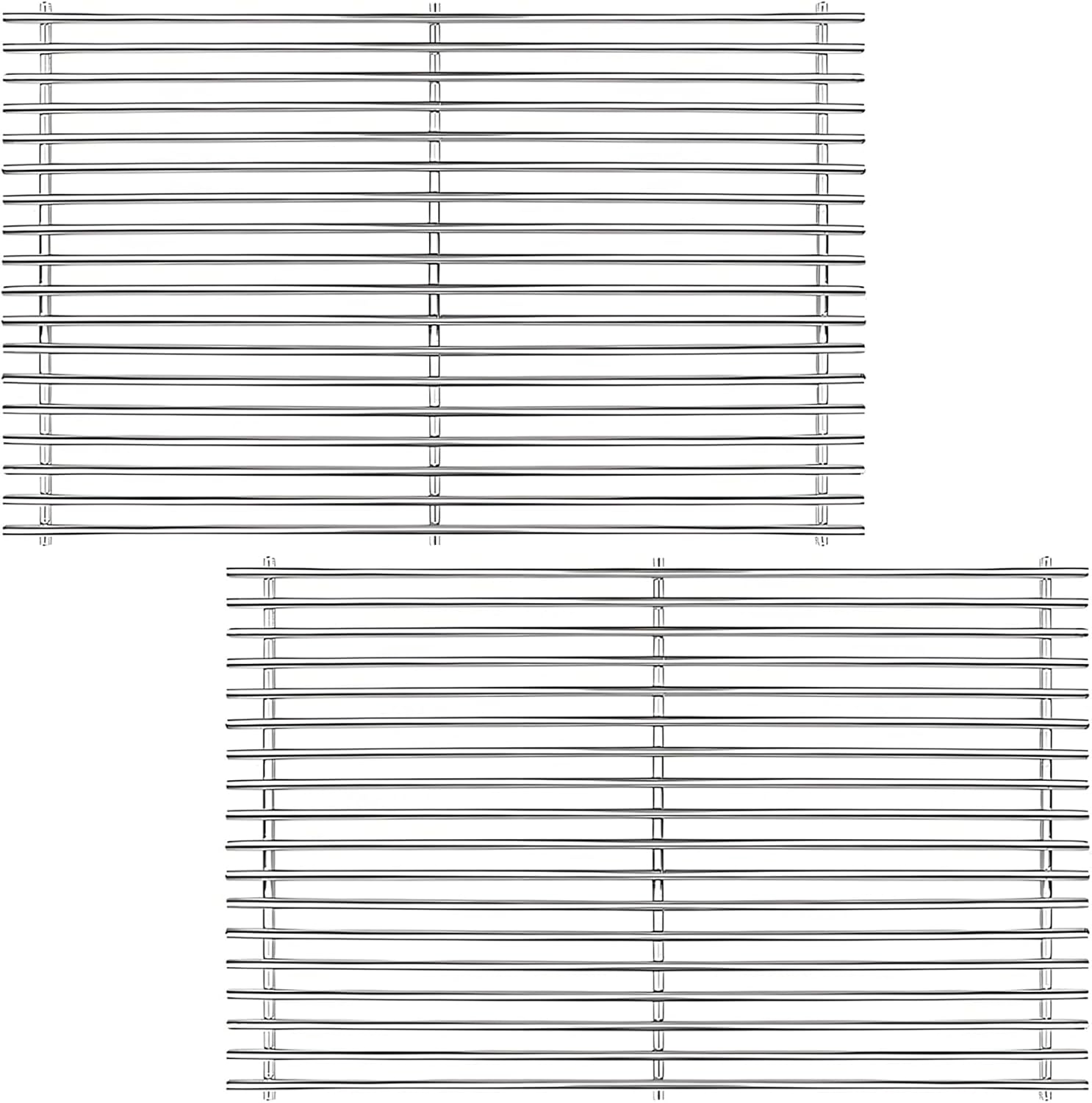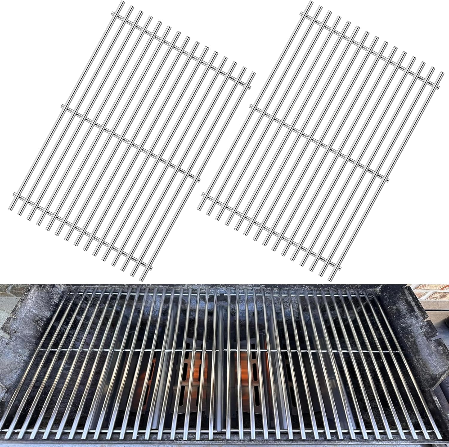 - Grill grates are superior material with nice welds and no sharp edges. No flaking off like cast iron and they will leave great grill marks. There are 18 parallel bars, unlike others which only had 15, which are similar to the original Weber stainless steel grate in structure and then the food will not easy to fall through.