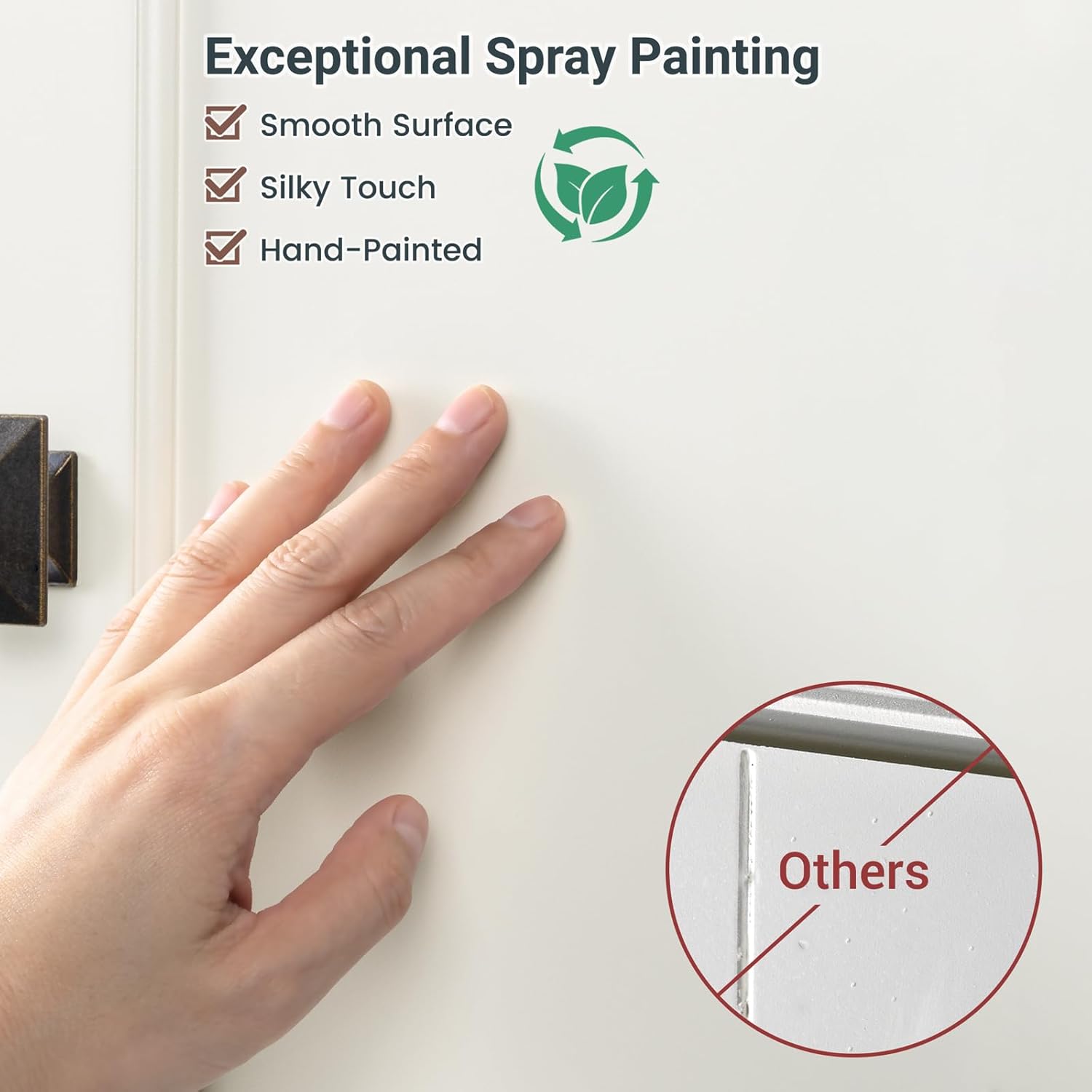 - Premium Material and Design - This medicine cabinet is crafted 15mm MDF board, ensuring long-lasting performance for daily use. The incorporation of two handle options—a hidden handle at the cabinet's base and an exposed alloy handle—adds both practicality and visual appeal. Soft-close European hinges minimize noise and safeguard the wall cabinet, ensuring effortless and noiseless door closure.