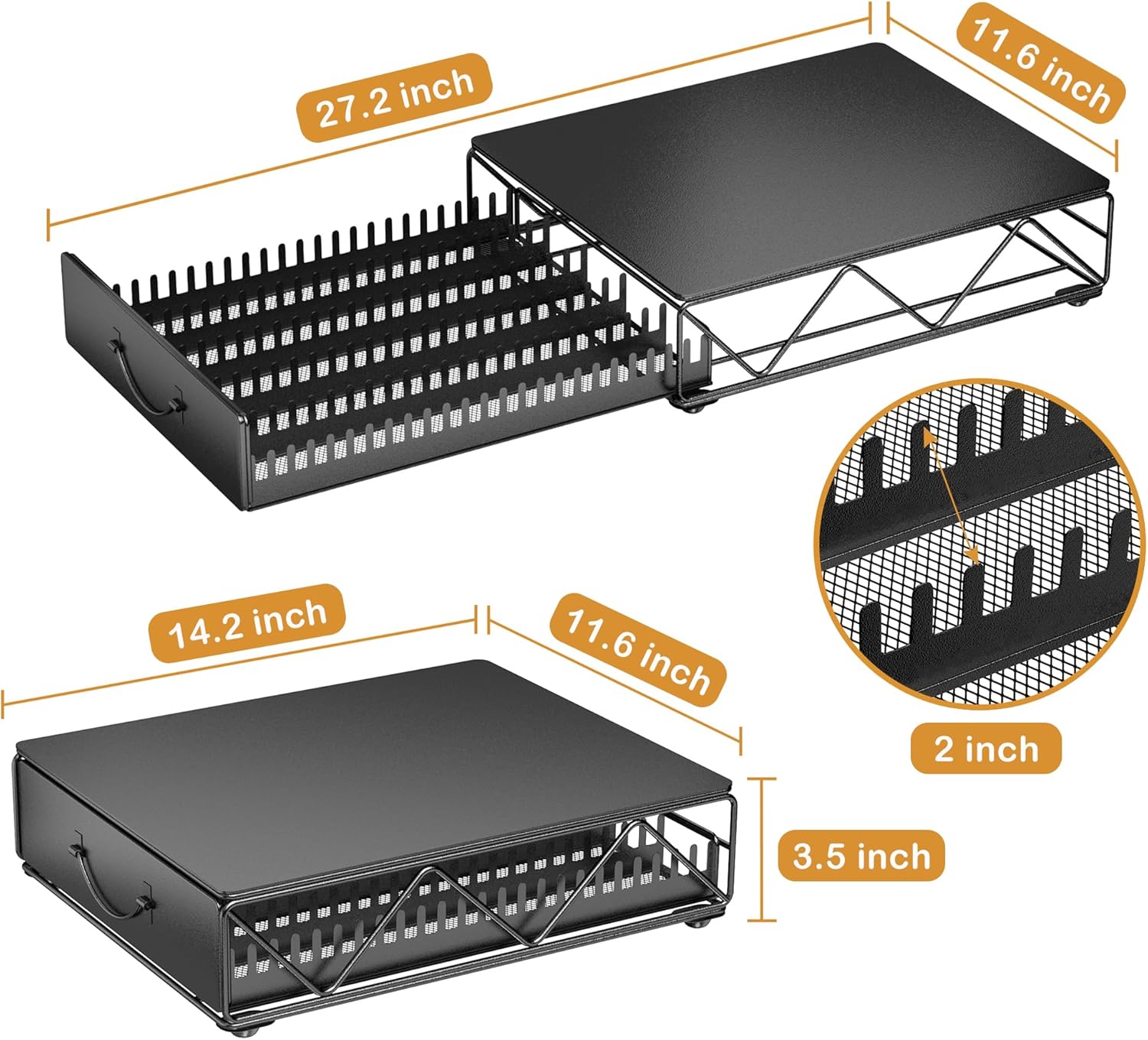 - Durable Construction: The coffee pod holder drawer is made of high-quality black powder-coated iron material. The bottom has four non-slip silicone bases to prevent scratching your tabletop