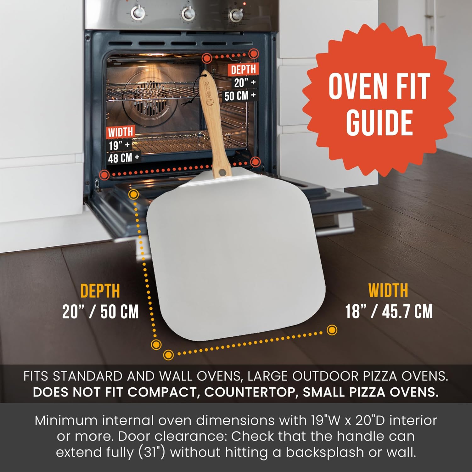 Chef Pomodoro Aluminum Metal Pizza Peel with Foldable Wood Handle for Easy Storage, Pizza Spatula, Gourmet Luxury Pizza Paddle for Baking Homemade Pizza Bread (18 x 20 inch)